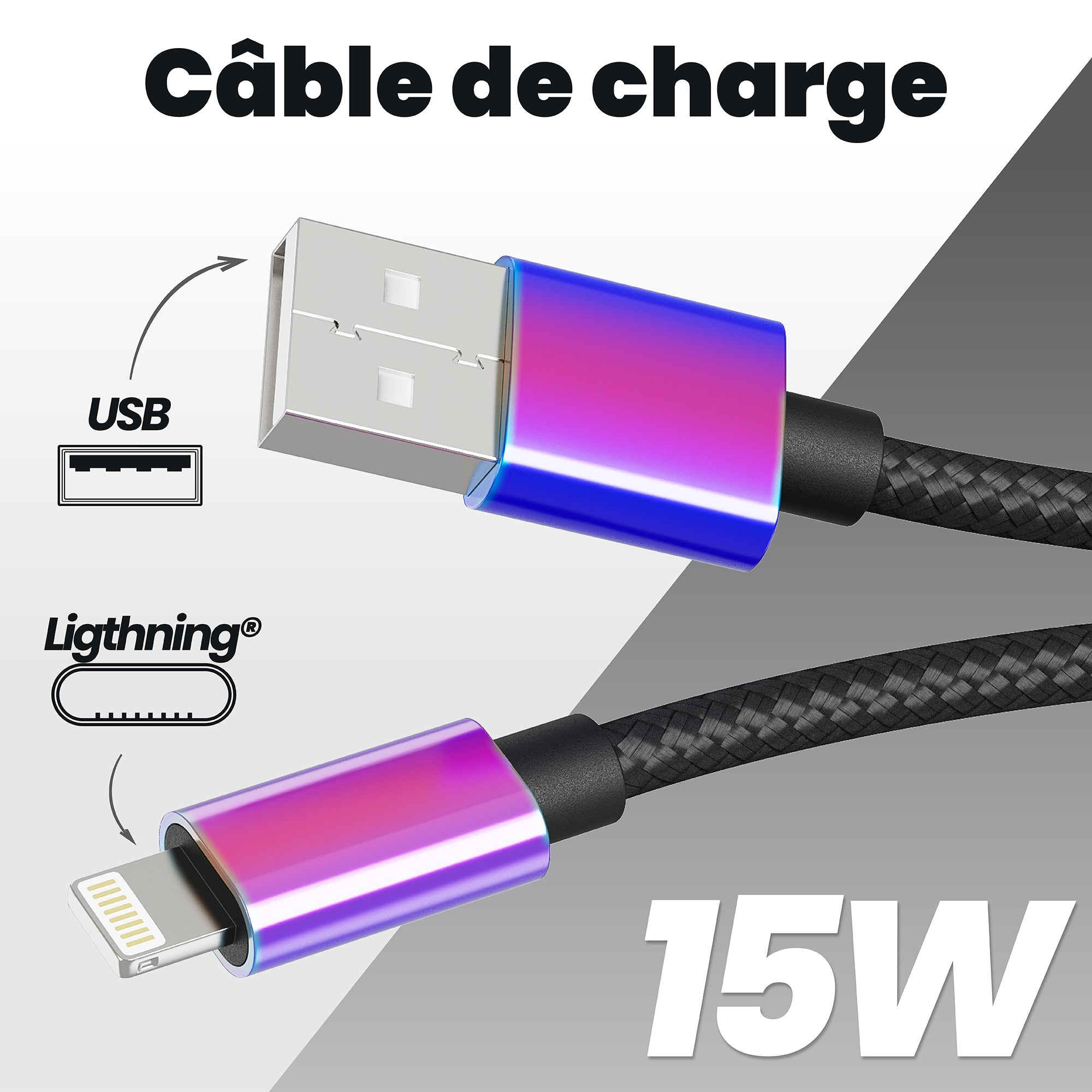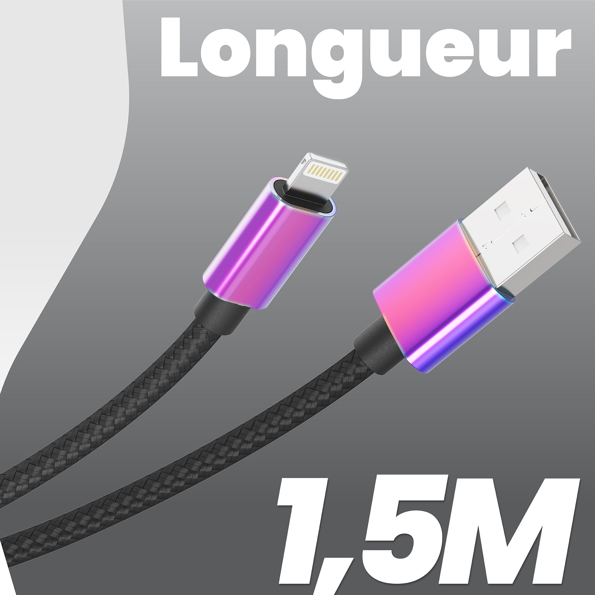 Practical above all: this cable can adapt to all situations, at work, in the car or at home. Its ultra-resistant braided nylon sheath will offer you prolonged and intensive use while remaining elegant. In addition, its metal connector with iridium effect adds a unique style effect and even greater resistance. Charge and synchronize your data at the speed of light: This USB A / Lightning® cable supports output intensities up to 3A to charge your compatible devices in a flash. Take advantage of its 1.50m length, ideal for using your device on your sofa or in the back of a car. Its Lightning connector is 100% reversible, no more wasting time trying to find the right direction of the cable, it's now child's play. All T'nB Lightning® cables are tested and approved by Apple®, a guarantee of their high quality. USB/Lightning® cable for charging and syncing with Apple® license: - iPhone 12 Pro, iPhone 12 Pro Max, iPhone 12, iPhone 12 mini, iPhone SE (2nd generation), - iPhone 11 pro max / iPhone 11 pro / iPhone 11 / iPhone XS max / iPhone XR / iPhone XS / iPhone iPhone SE / iPhone 5S / iPhone 5C / iPhone 5 - iPad Pro (12/9-inch) / iPad Pro (9.7-inch) / iPad mini 4 / iPad mini 3 / iPad air 2 / iPad Air / iPad mini 2 / iPad mini / iPad (4th generation) - iPod touch (6th generation) / iPod touch (5th generation) / iPod nano (7th generation)