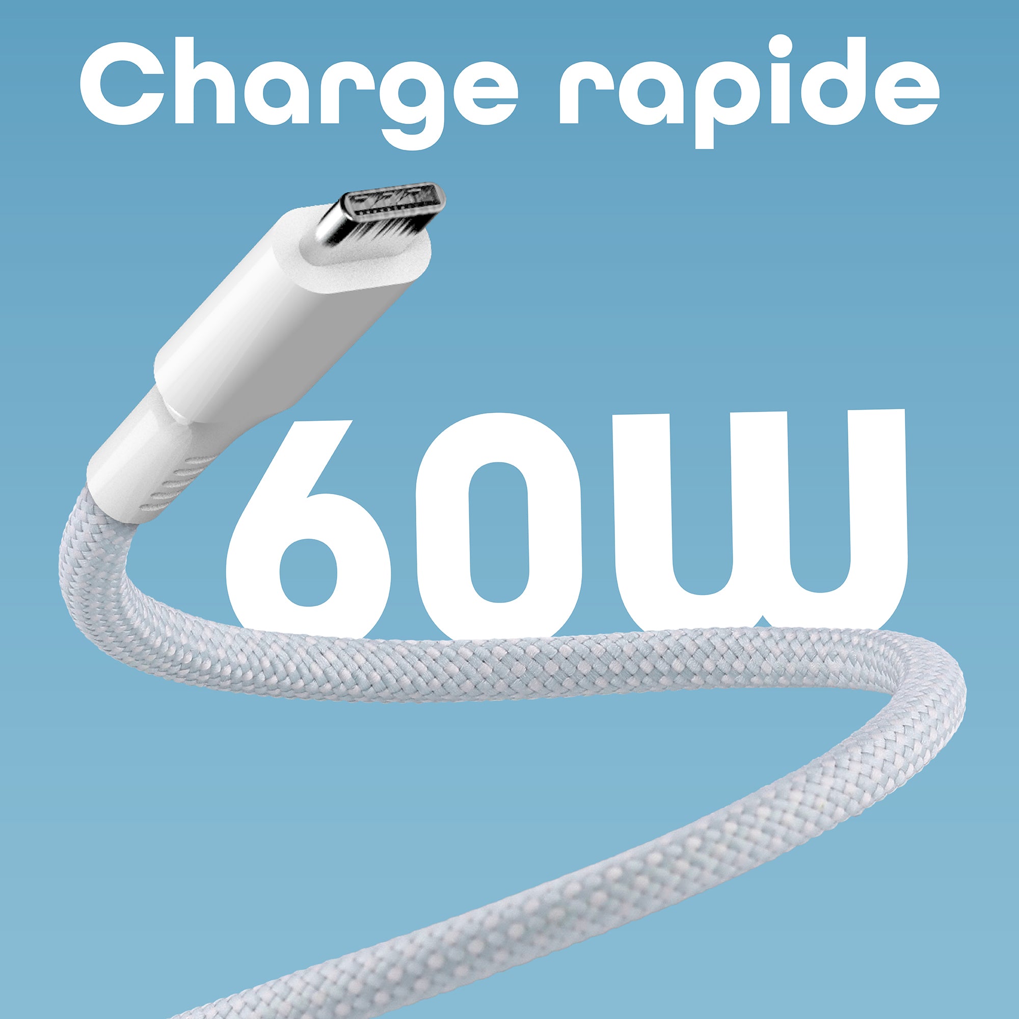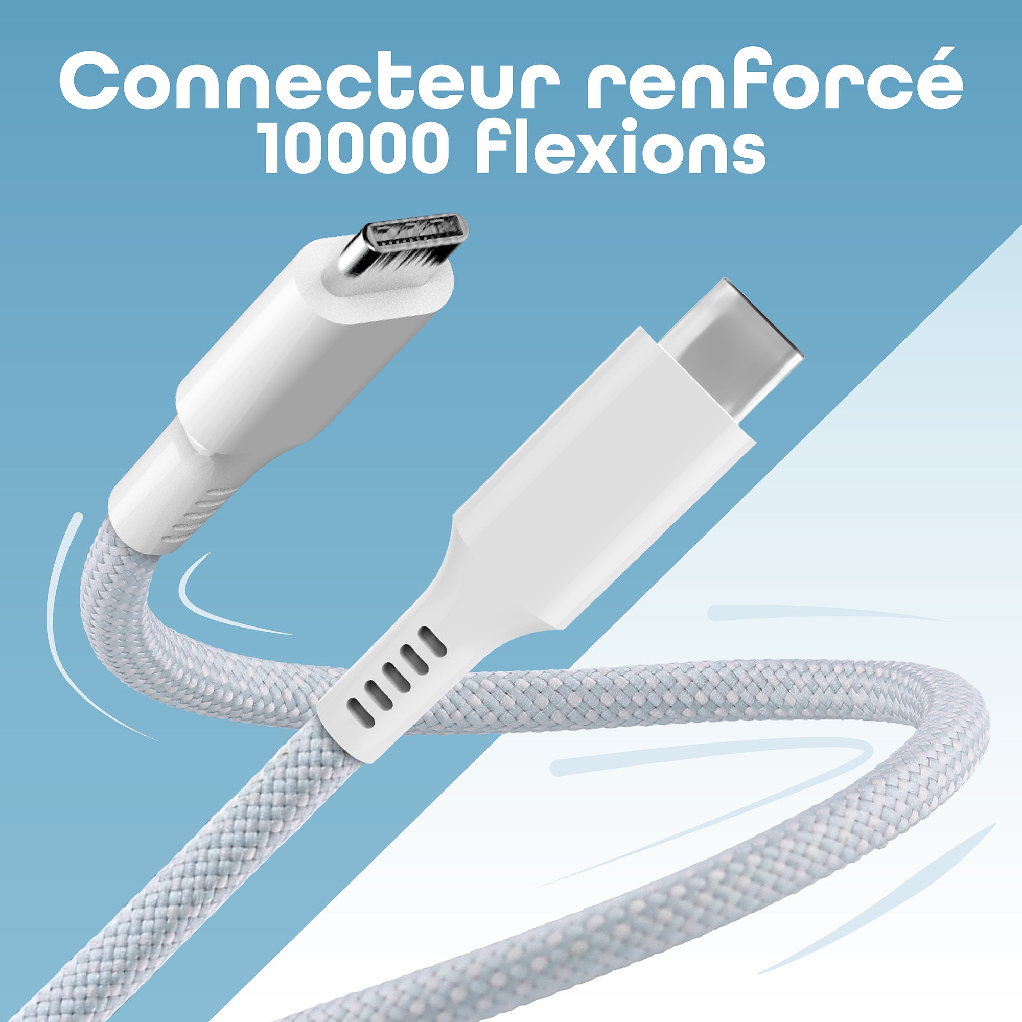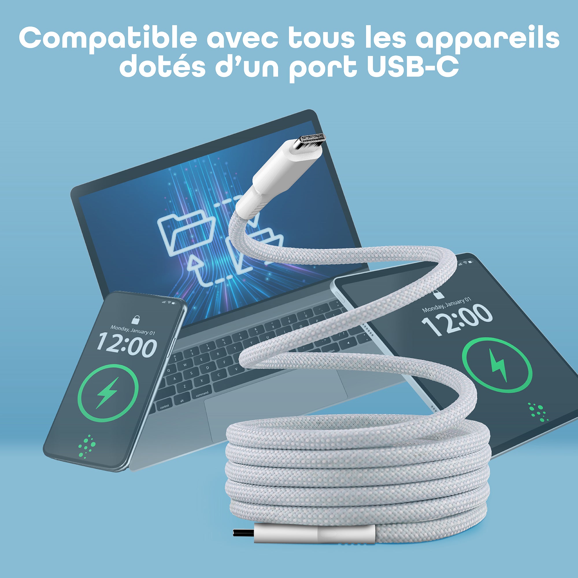 Discover our innovative cable with magnetic sheath, designed to meet all your charging and connection needs. A unique innovation that combines durability, performance and practicality. In addition to being made of braided nylon, the sheath is magnetic, which allows the cable to wrap around itself very easily. It is therefore very easy and practical to store and transport. No more cables that get tangled with each other and knotted, your cable is well stored, easy to unroll and use. As this cable will never leave you, we have chosen to use a braided sheath combining strength and elegance with reinforced connectors made of flexible and resistant plastic (TPE). You can therefore use this cable without worrying about damaging it, it is designed to last. Like all our other Type-C to Type-C cables, it is compatible with a charging power of 60W but also with data synchronization. It is therefore compatible with all your smartphones or other devices equipped with a USB-C port. Its ideal length of 1.5 meters makes it usable everywhere, at home, in the car or even at work. The cable with magnetic sheath is the essential accessory for all your electronic devices. Combining robustness, efficiency and convenience, it is designed to simplify your daily life