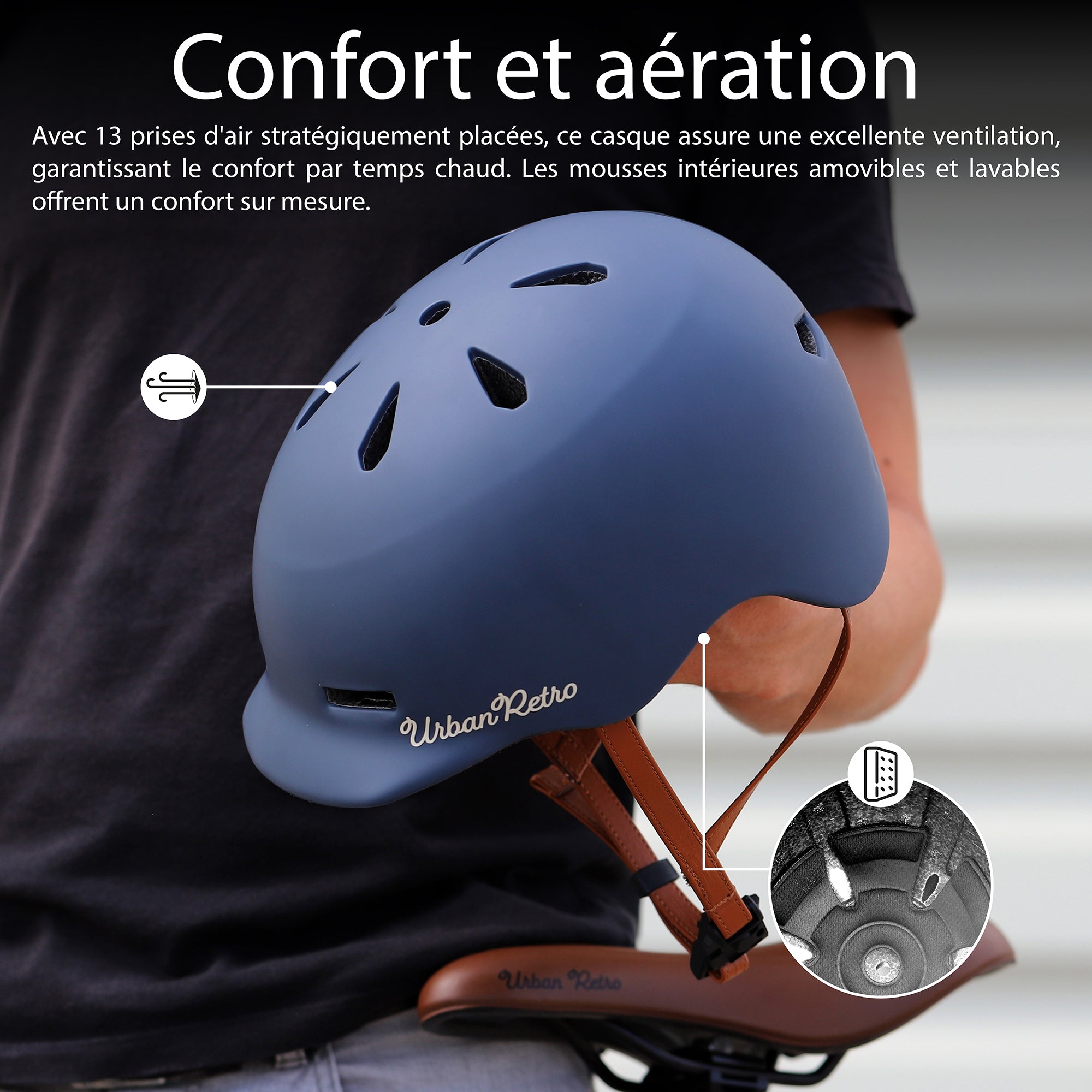 Vintage security: Stylish Urban Retro helmet, 13 vents, washable foam.
