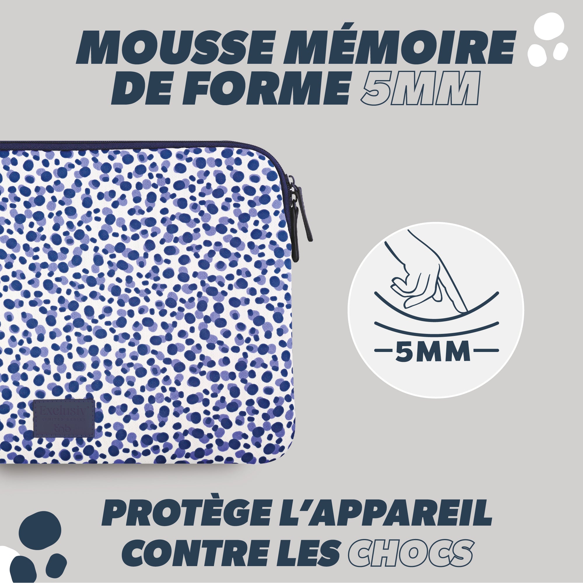 Exclusive design: 87% RPET, 5 mm shock-absorbing foam, soft touch interior.