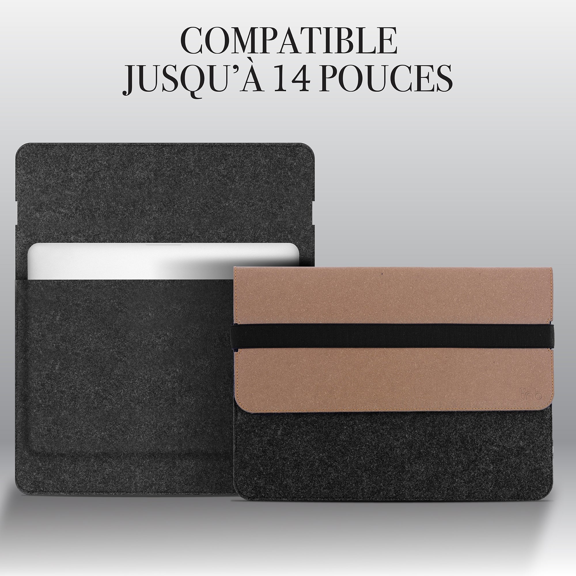 French eco leather and felt 13-14" PC pouch - brown/grey