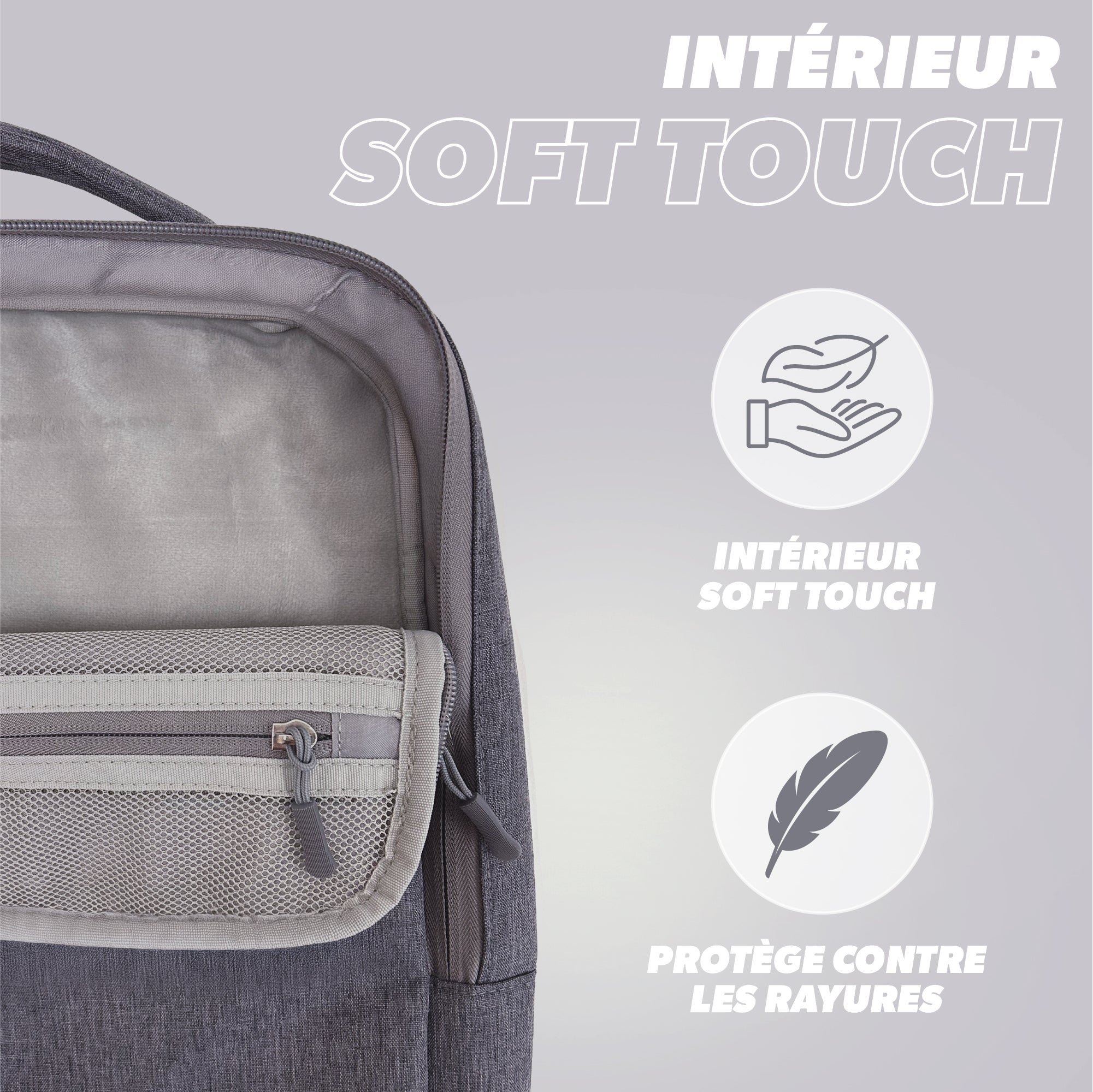 This backpack is practical. Its lightweight design makes it comfortable to carry. Its trolley strap allows you to slip it onto a suitcase or trolley and avoid being weighed down during your travels.