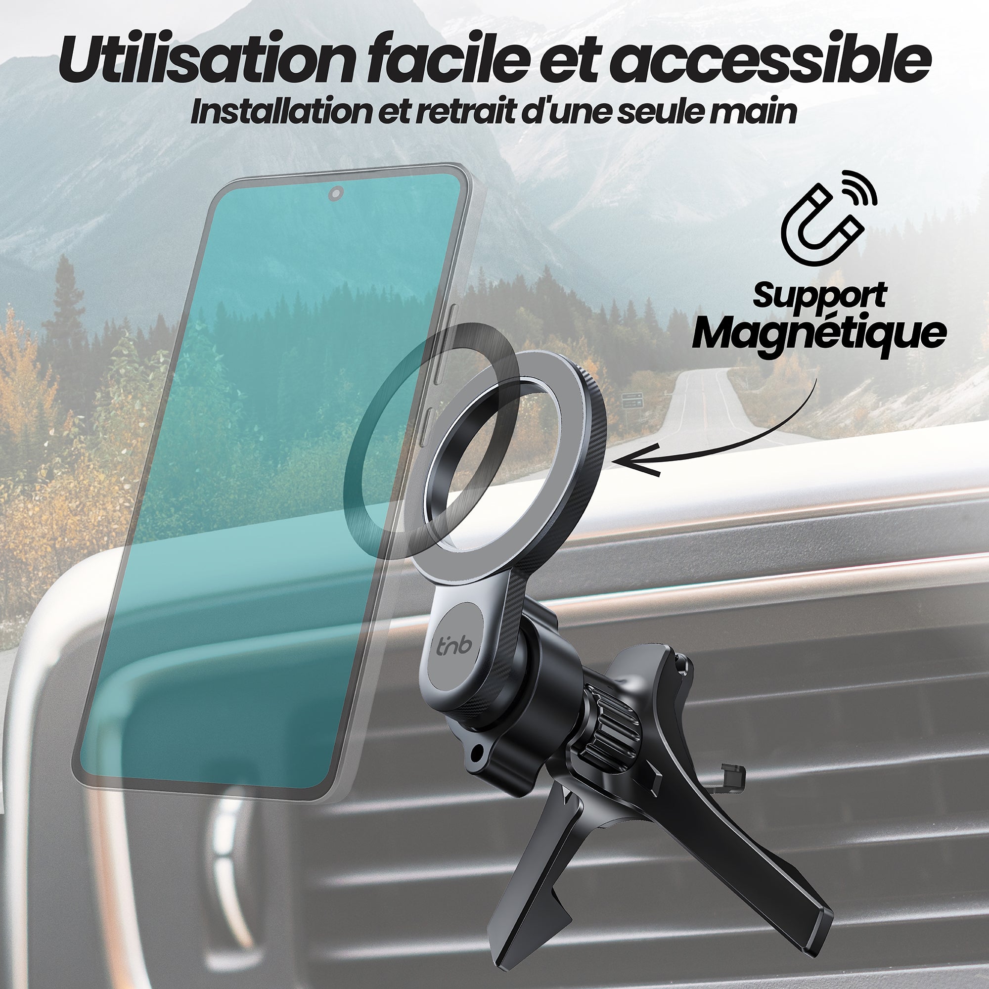 This ultra-compact and elegant magnetic air vent mount is ideal for accessing your smartphone in a single gesture, even in the car.