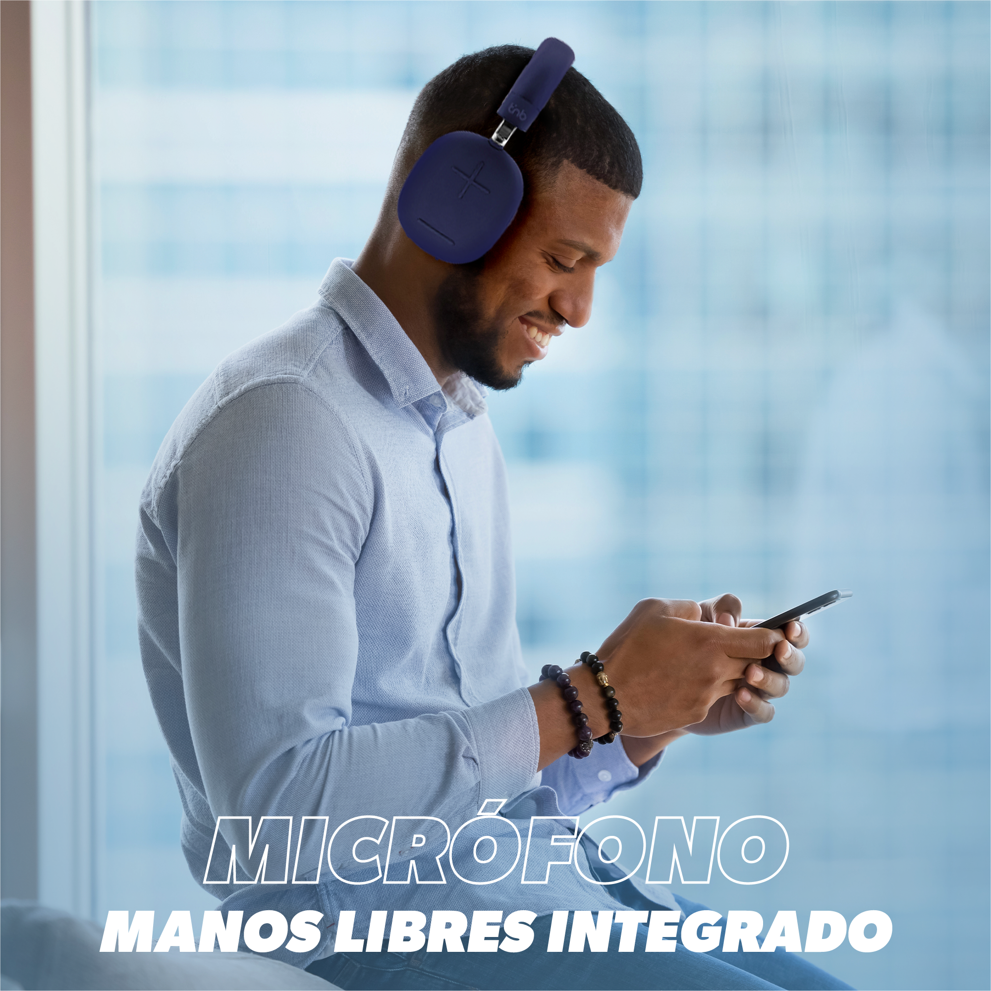 The headset is equipped with control buttons and a microphone: manage your playlists and make calls without using your smartphone.