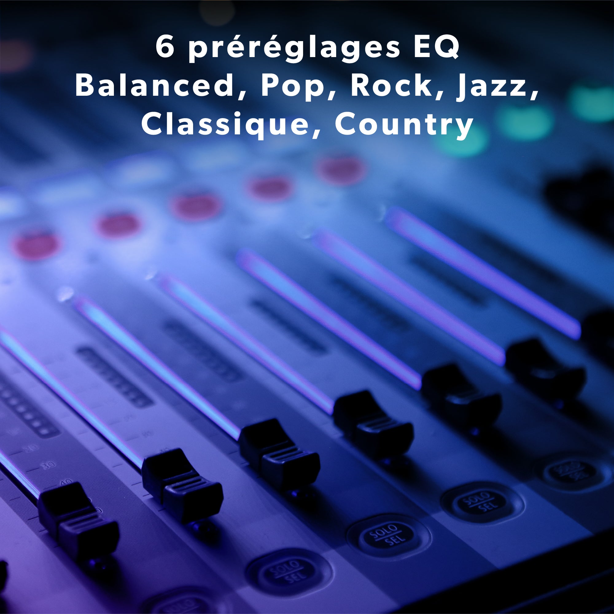 Two buttons make bass and treble control intuitive: you're the only DJ at your party! You can also select from the 6 preset balance settings: Normal, Pop, Rock, Jazz, Classical, or Country.
