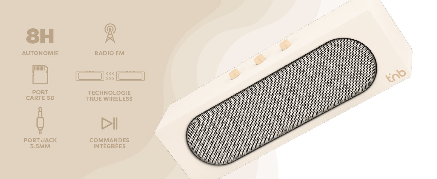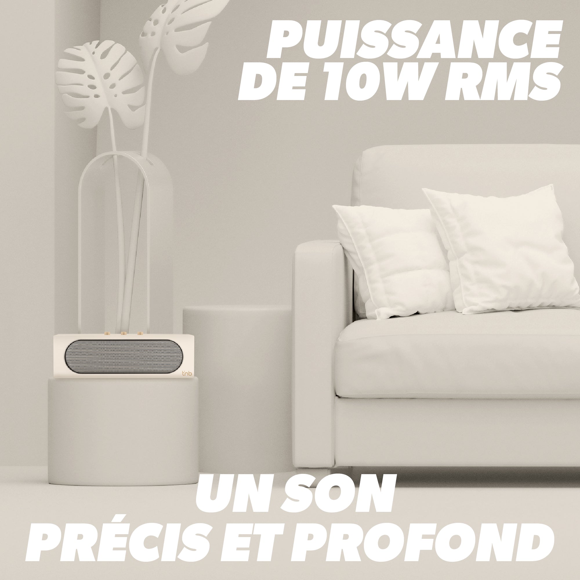 Sa puissance réelle de 10W RMS offre une restitution fidèle de toutes les fréquences, des plus basses aux plus aiguës; et ce avec une autonomie de plus de 8 heures.