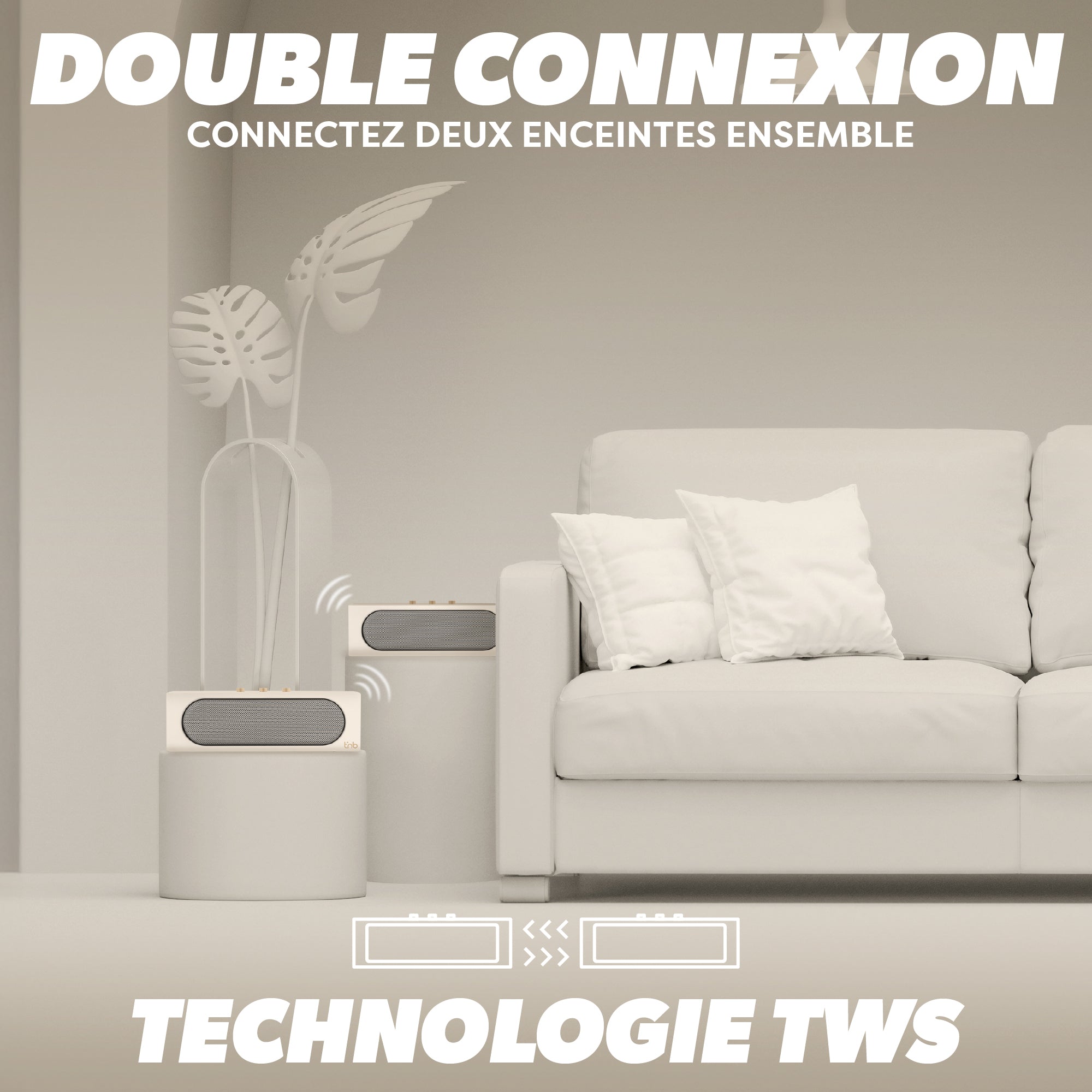Enfin, grâce à la connexion TWS, connectez 2 enceintes entre elles et créez un univers stéréo !