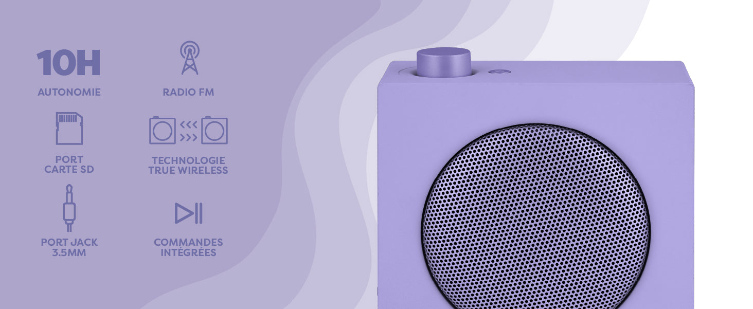 Son haut-parleur de 5W offre une restitution fidèle de toutes les fréquences, des plus basses aux plus aiguës; et ce avec une autonomie de plus de 10 heures.