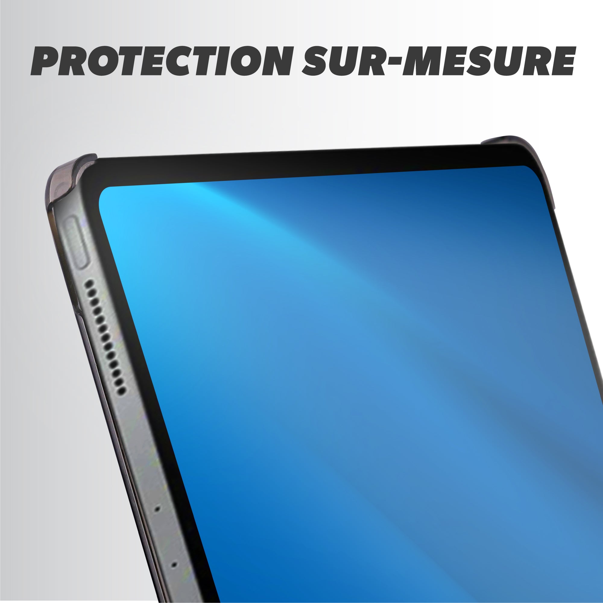 Adopt this folio for your new iPad Air 11 inches (M2). It guarantees you security and peace of mind with its reinforced edges that protect your iPad against shocks and falls. Its dimensions perfectly fit your tablet to protect it optimally. The presence of magnets in the flap allows it to perfectly fit the screen of your iPad when you close your folio, thus protecting it from any type of scratch. In addition, this smart flap is detectable by your iPad, thus allowing you to automatically activate the automatic sleep / wake function. Your iPad goes to sleep and activates automatically when your folio moves. The three flaps of the flap can be put in two positions, allowing the use of the iPad in writing mode as well as in viewing mode. The dimensions have been designed so that you can magnetize your Apple Pencil / Apple Pencil Pro each time you use it. The case is slightly transparent and therefore highlights the back of your Apple tablet. This folio is also compatible with your iPad Air 4 and iPad Air 5.