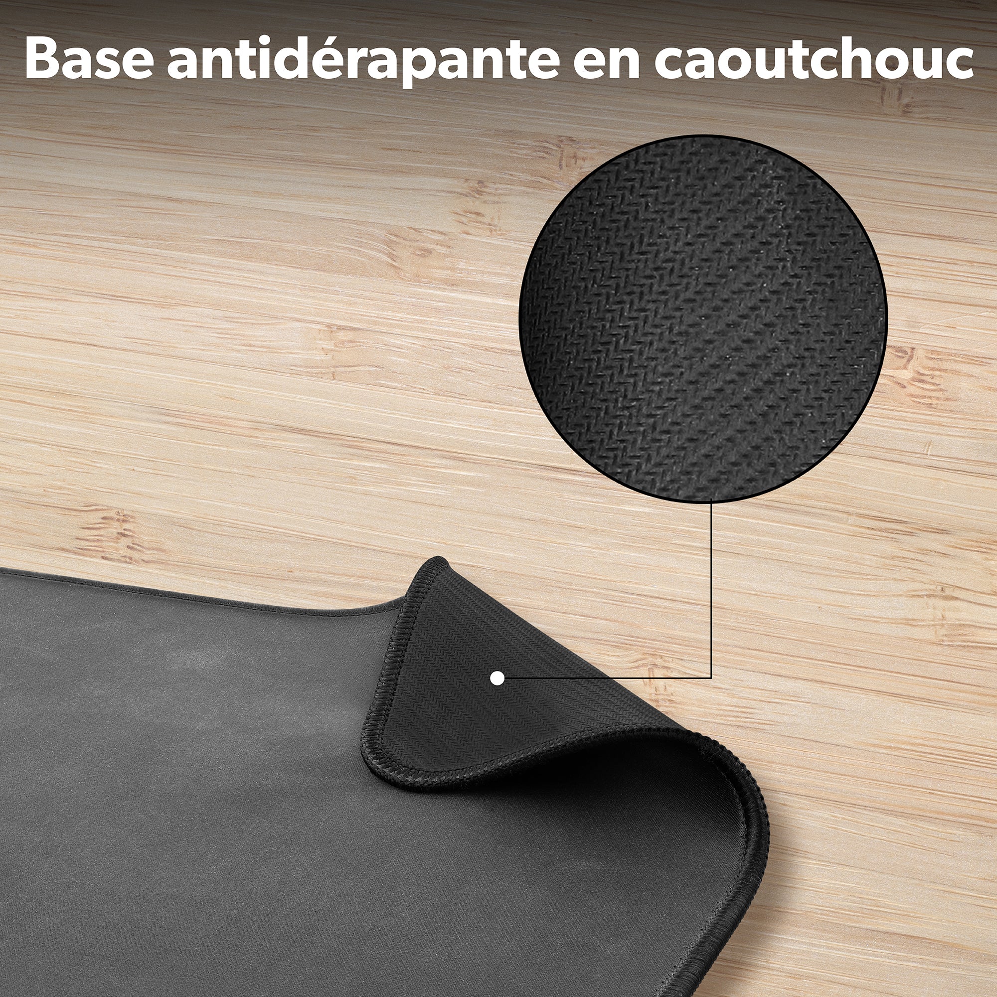 This large mouse pad allows you optimal installation comfort. Enjoy an extended work surface, soft and pleasant to the touch. Its smooth surface allows optimal mouse glide, without effort. Its non-slip rubber coating coupled with its large surface, allows perfect anchoring on the desk. It can be placed vertically or horizontally on the desk, according to preference. Its stitched edges offer a distinguished style and great durability.