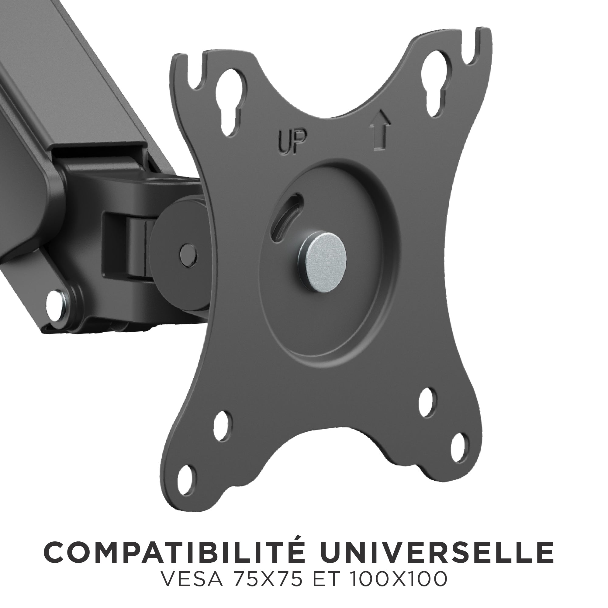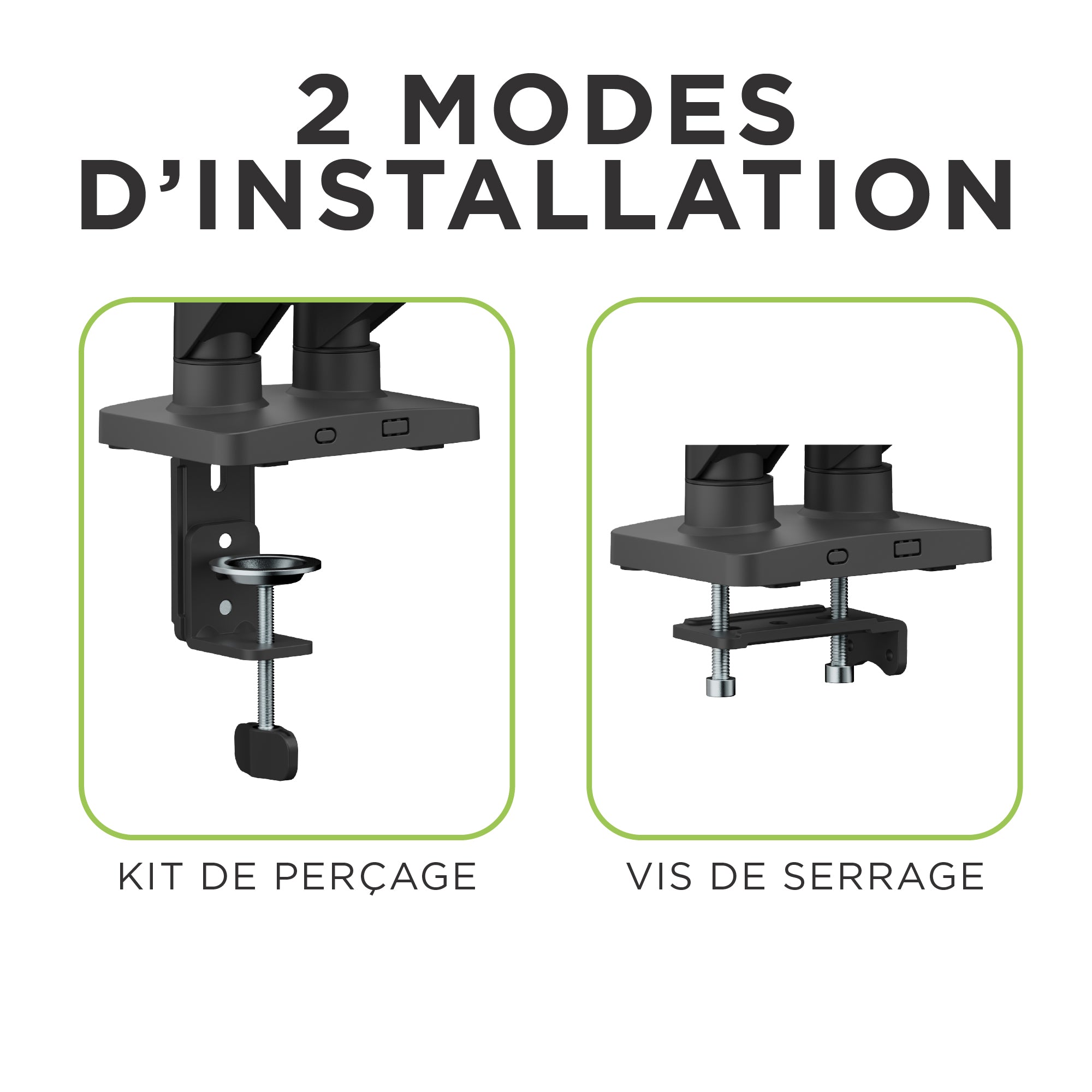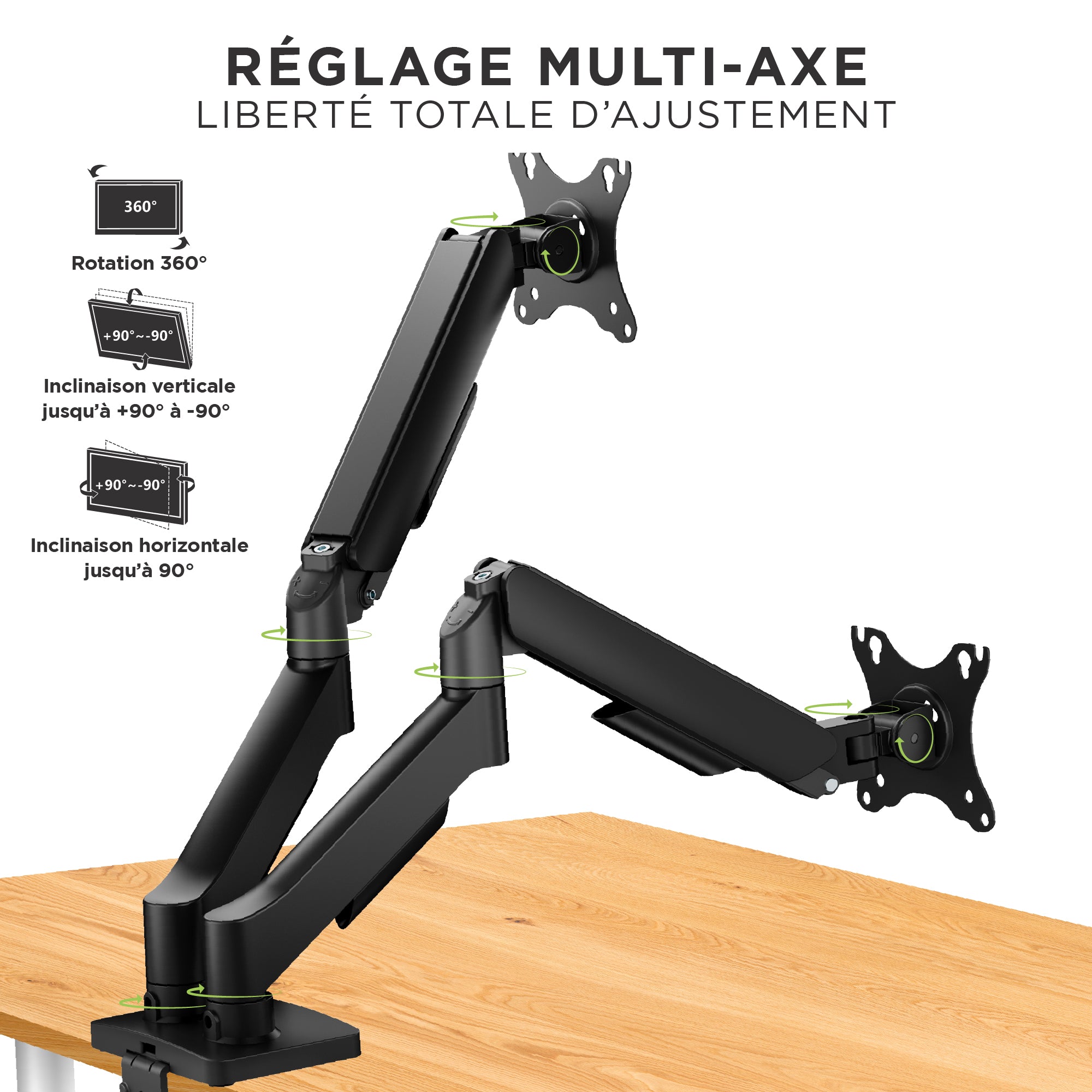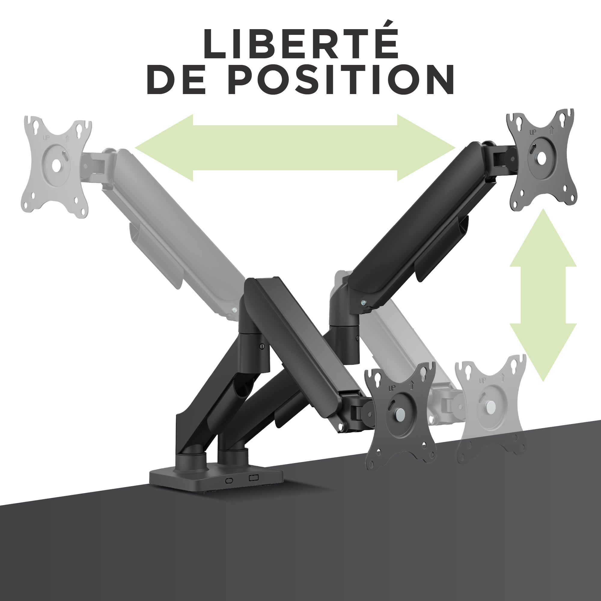 El brazo doble le permite colocar sus dos pantallas libremente y Para mejorar su comodidad en el trabajo.