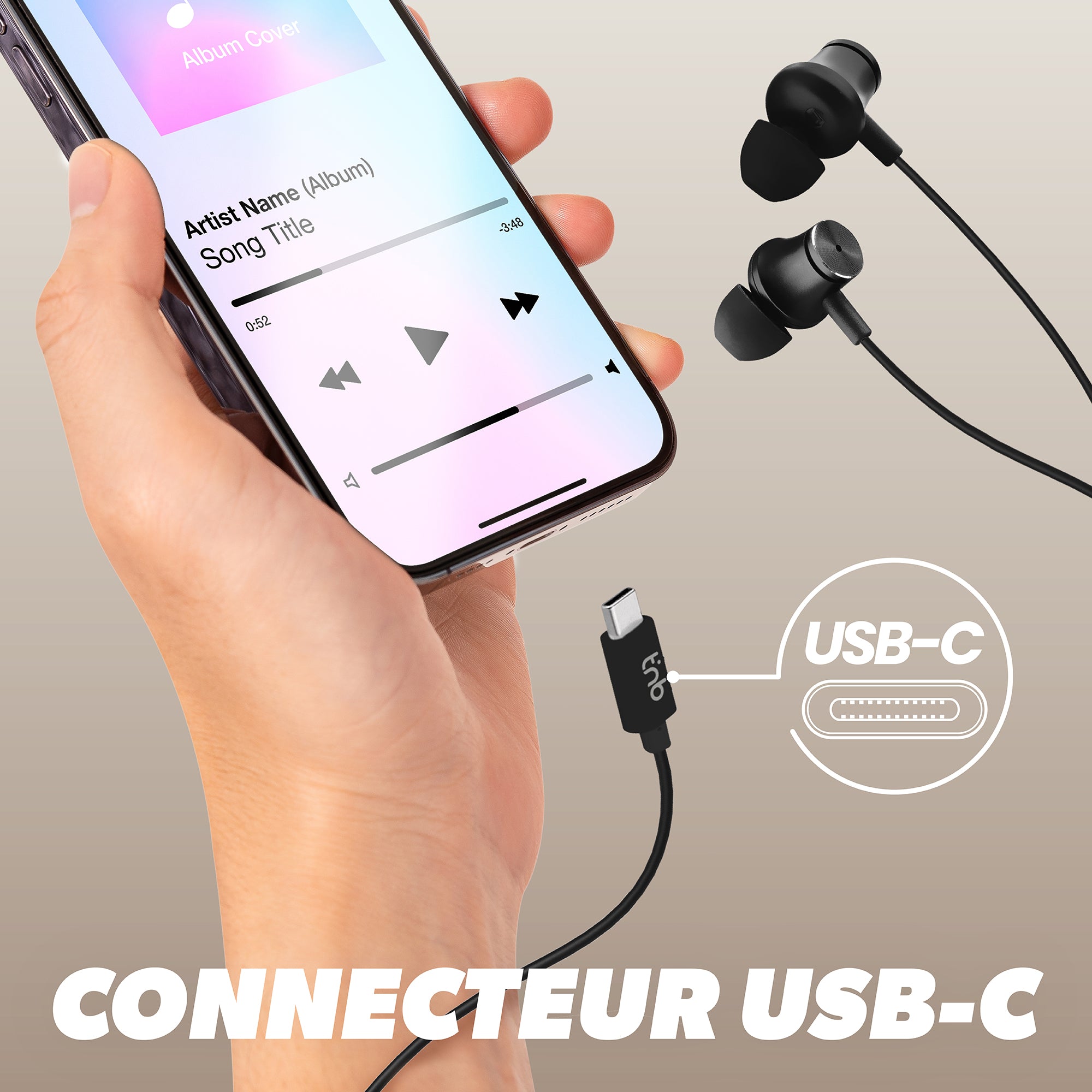 Muy cómodos y agradables de llevar, ofrecen la reproducción de sonido más fiel. Conecta tus auriculares al puerto USB-C de tu smartphone Android o iPhone de última generación y disfruta de tus listas de reproducción al instante.