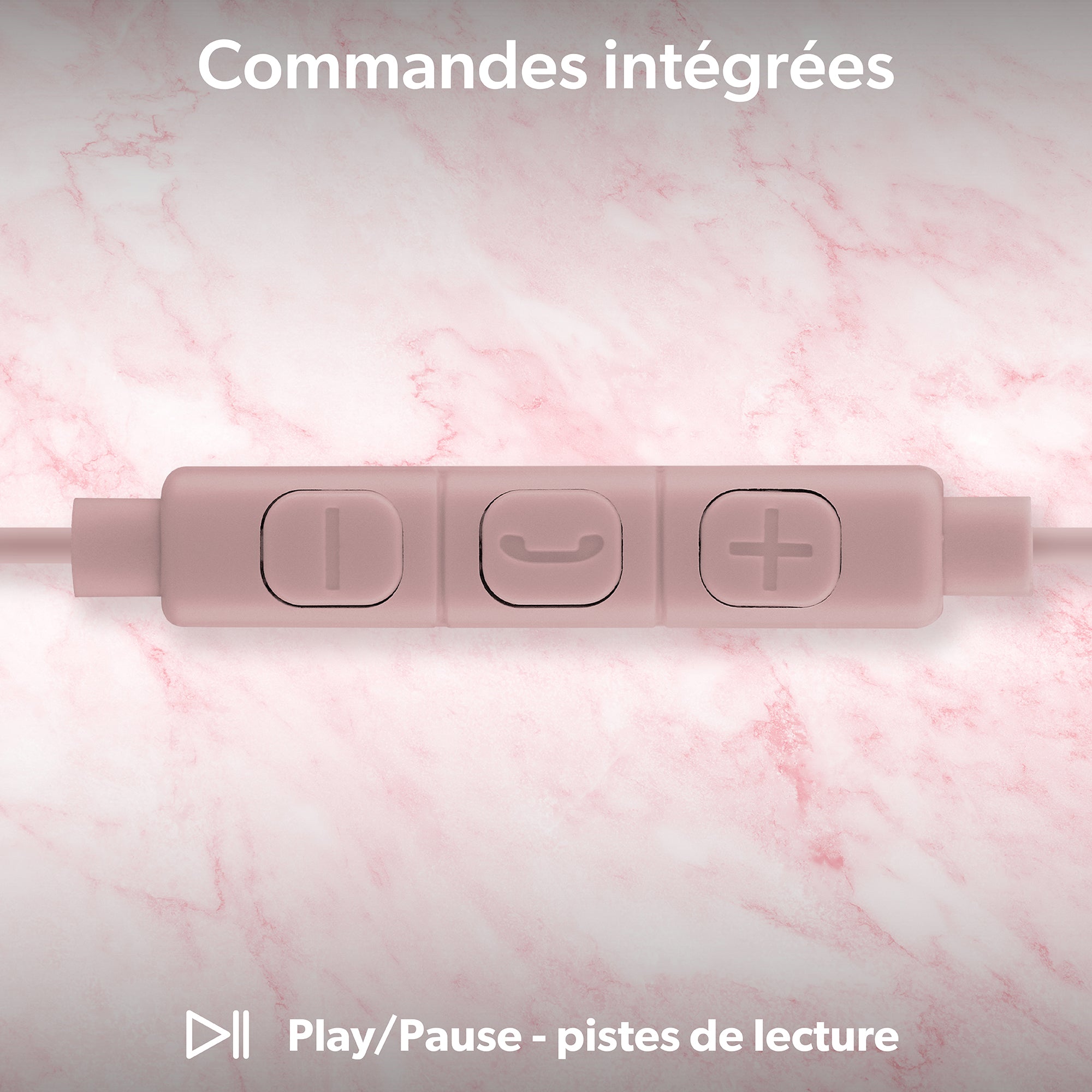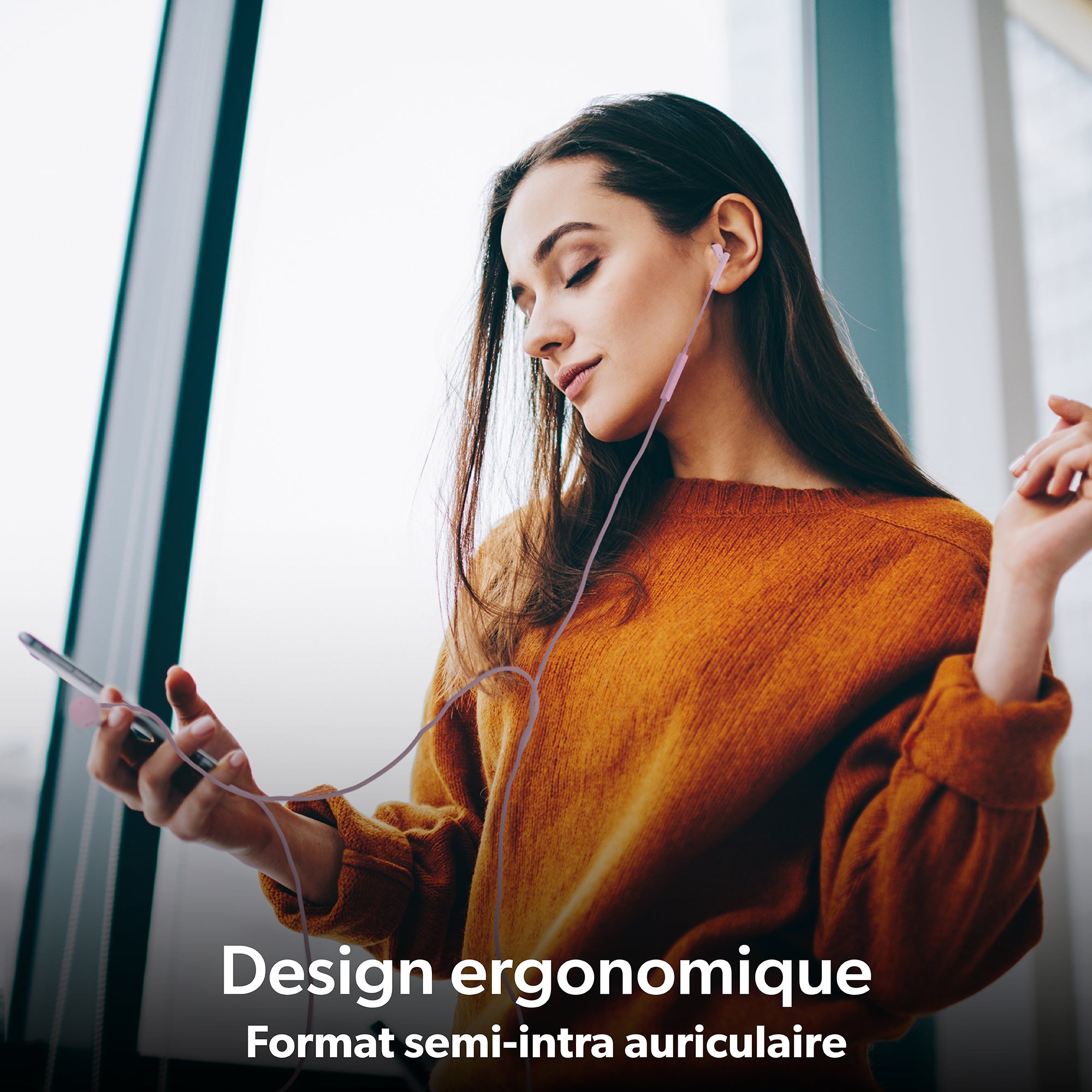 Compatibles con todos los reproductores de música de Apple (iPhone, iPod, iPad), estos auriculares de la colección CURV presentan un diseño elegante y un elegante color rosa.