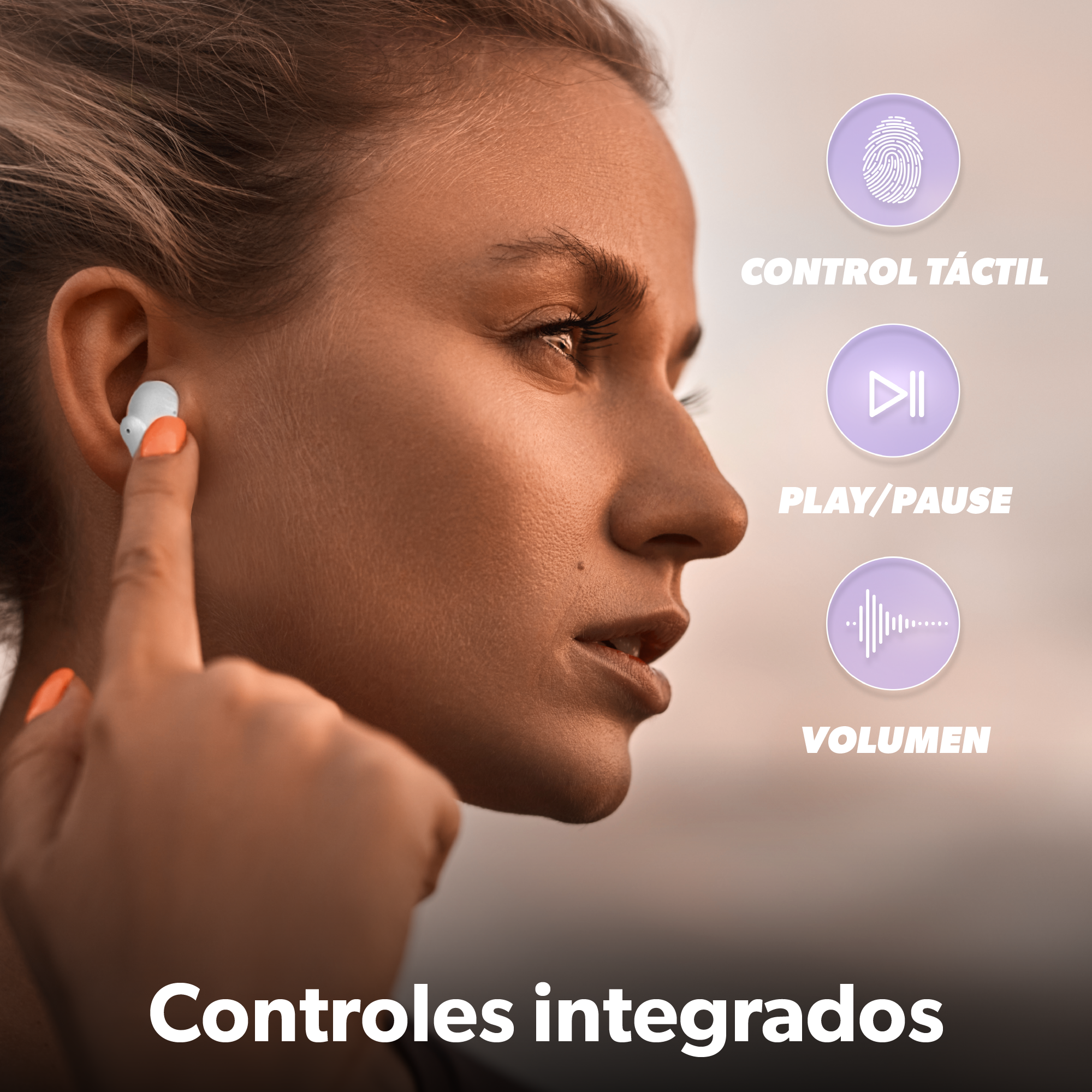 Utilice el control táctil para administrar el volumen, reproducir pistas y atender llamadas sin usar su teléfono inteligente.