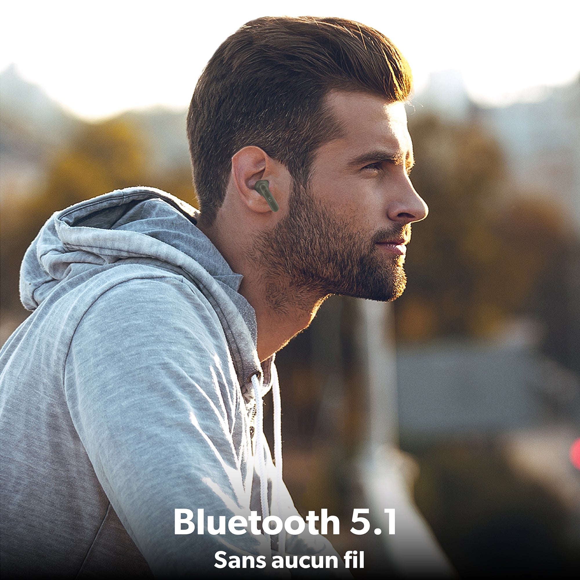 Además, gracias a la tecnología Bluetooth 5.1, es posible disfrutar de una mayor duración de la batería de alrededor de 20 horas así como de una reproducción de sonido aún más fiel.