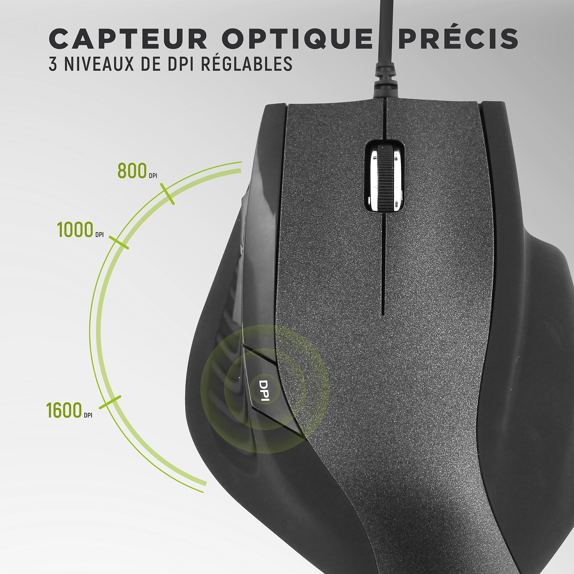 Ratón de gran tamaño para acomodar todos los dedos y evitar fricciones.
