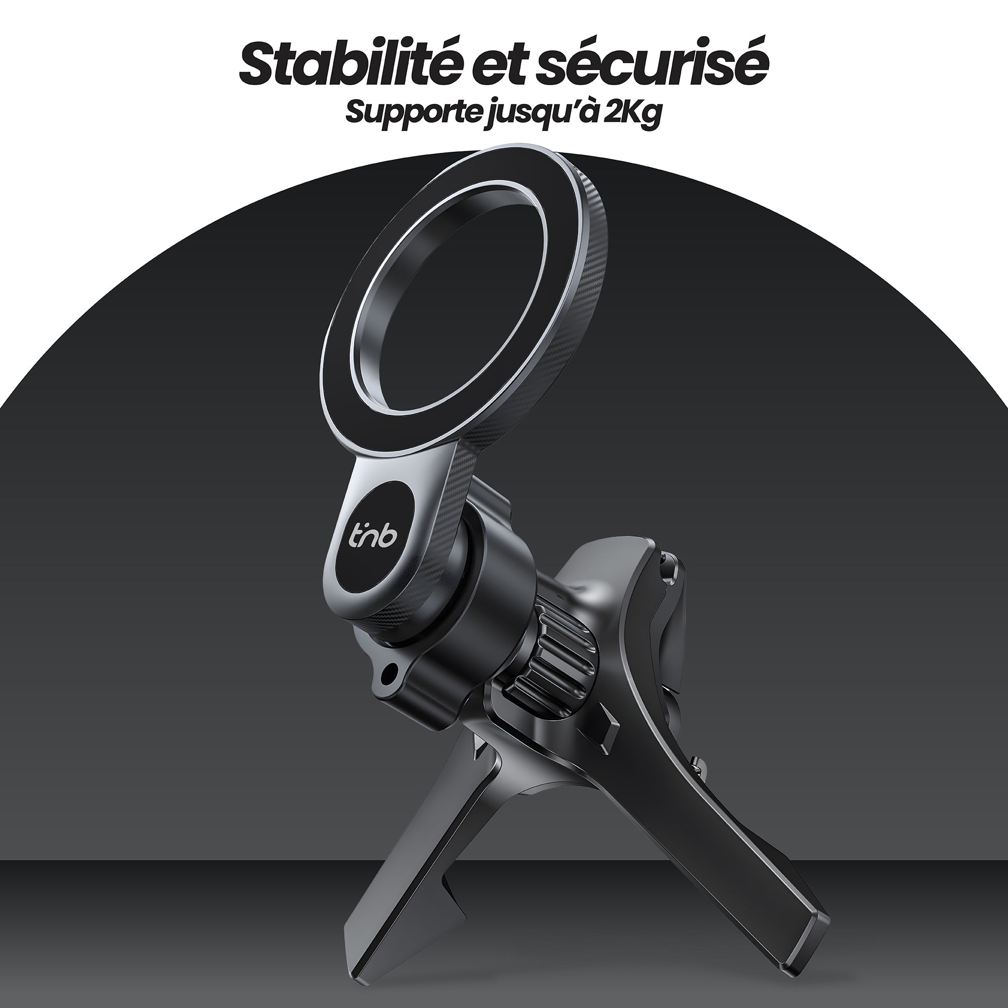 Este soporte magnético ultracompacto y elegante se fija fácilmente a la rejilla de ventilación de tu vehículo. Te permite acceder a tu smartphone con un solo movimiento, garantizando un uso cómodo y seguro en el coche.