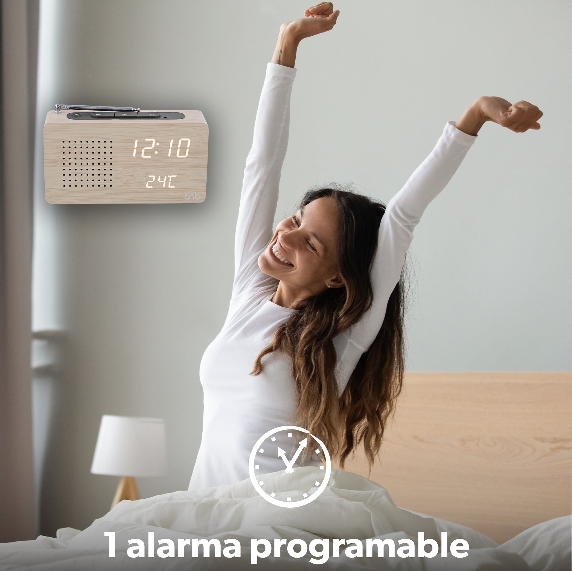 Radio FM con escaneo automático + modo de día laborable:Despierta con música sin estrés el fin de semana.