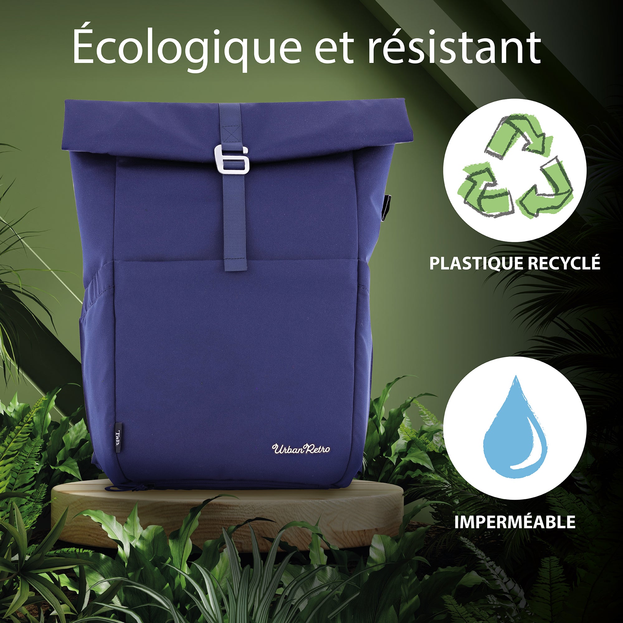 Fabricada íntegramente con tejido de botellas de plástico recicladas (RPET), esta bolsa es ecológica. Su revestimiento la hace resistente a la lluvia en viajes cortos.
