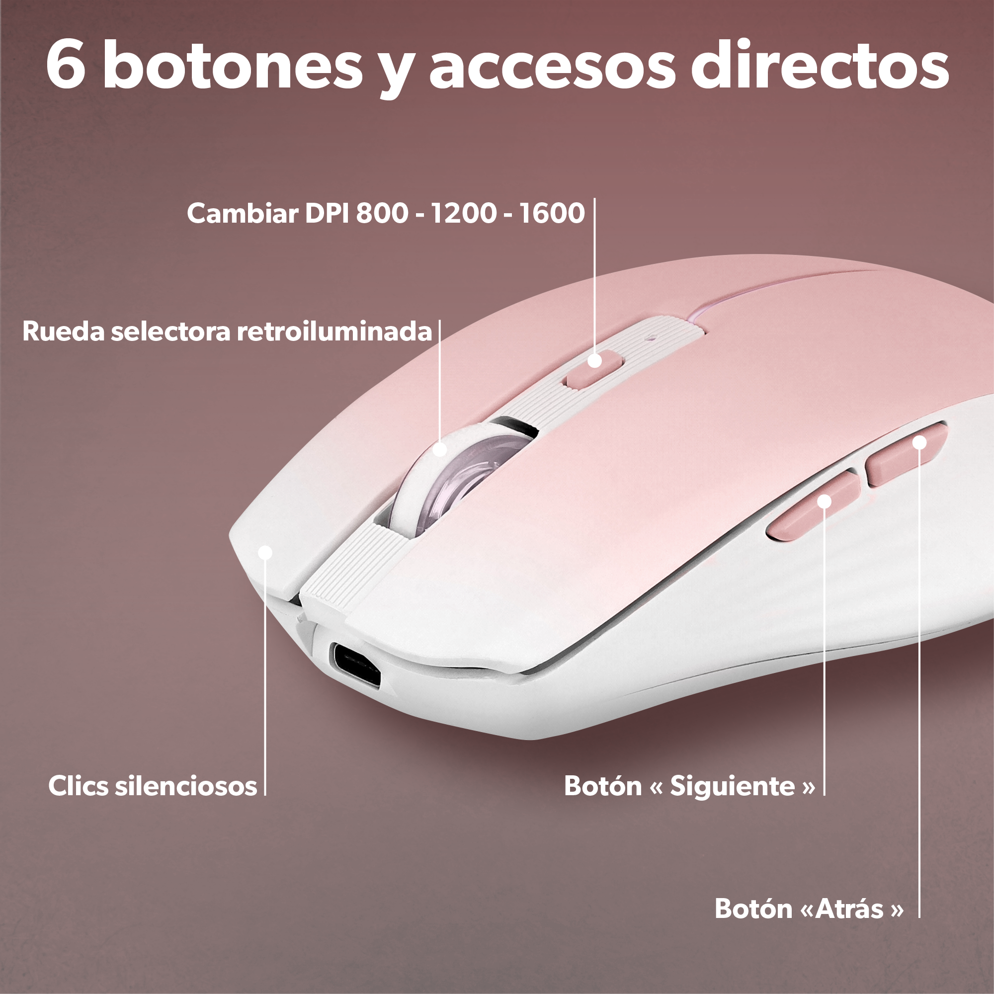 Ratón colorido recargable DUAL CONNECT rosa - GRADIENT6
