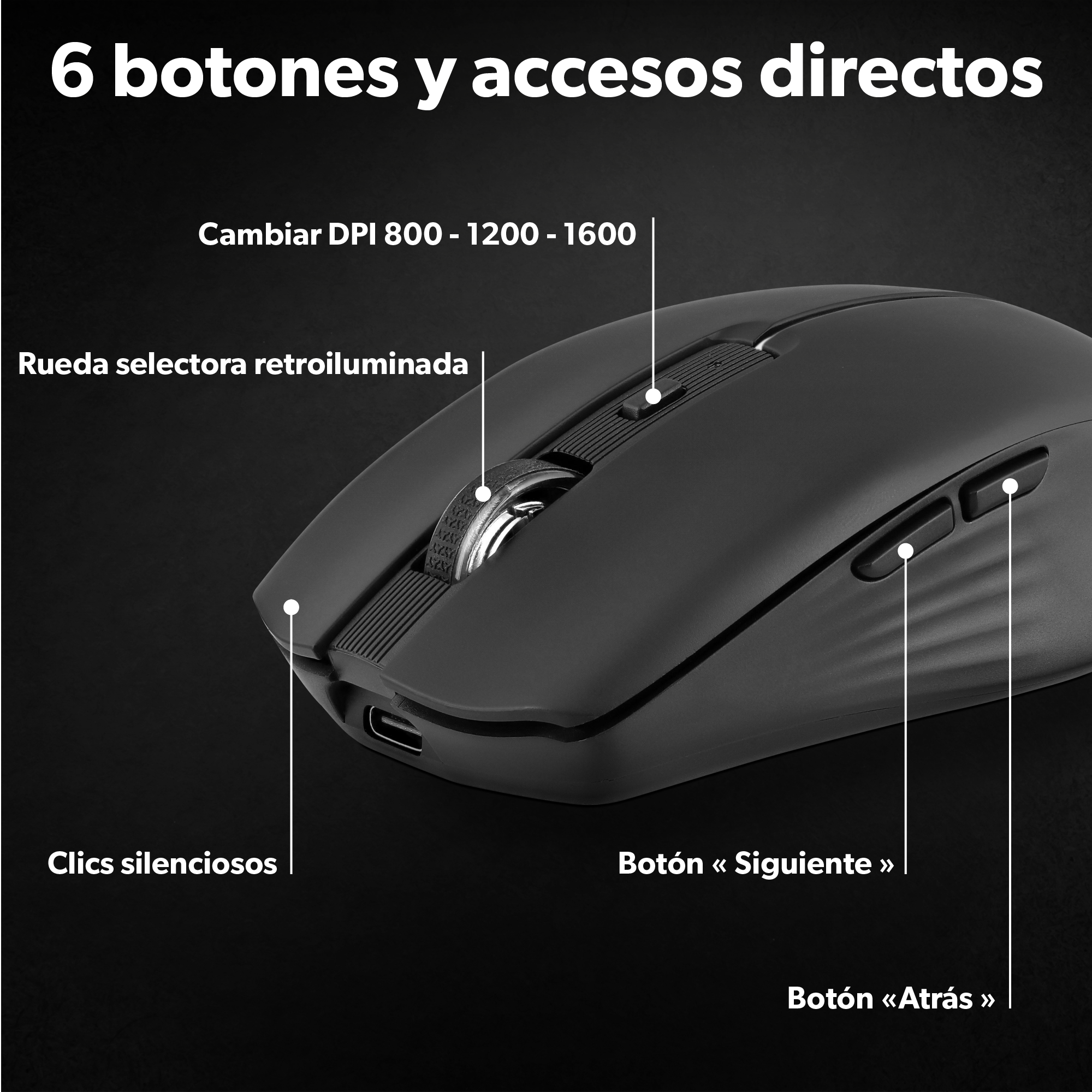 Ratón recargable DUAL CONNECT negro - GRADIENT6