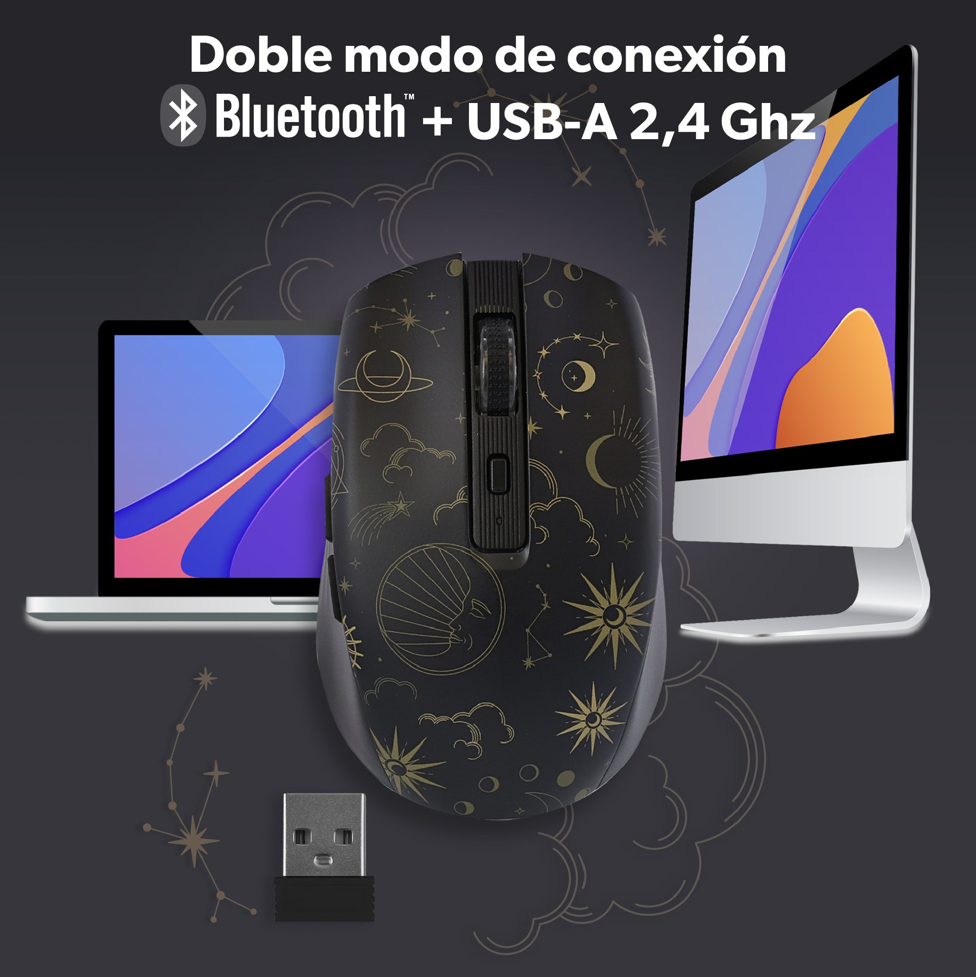 Fácil conexión:USB-A 2,4 GHz + Bluetooth, Plug & Play multidispositivo.