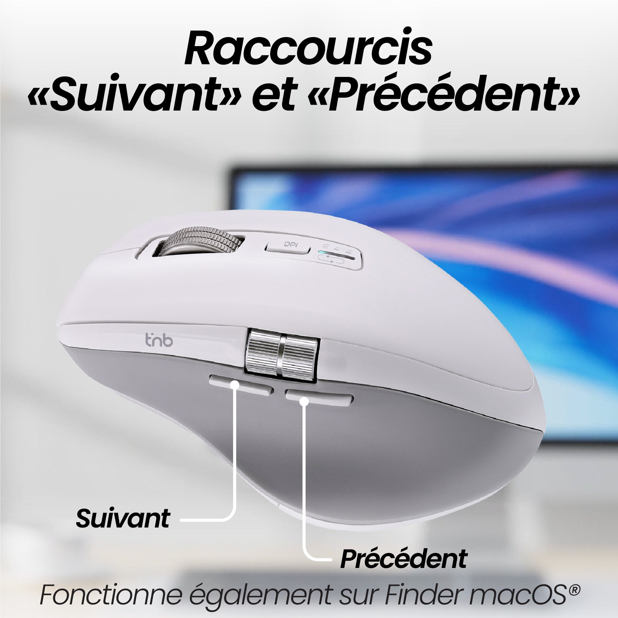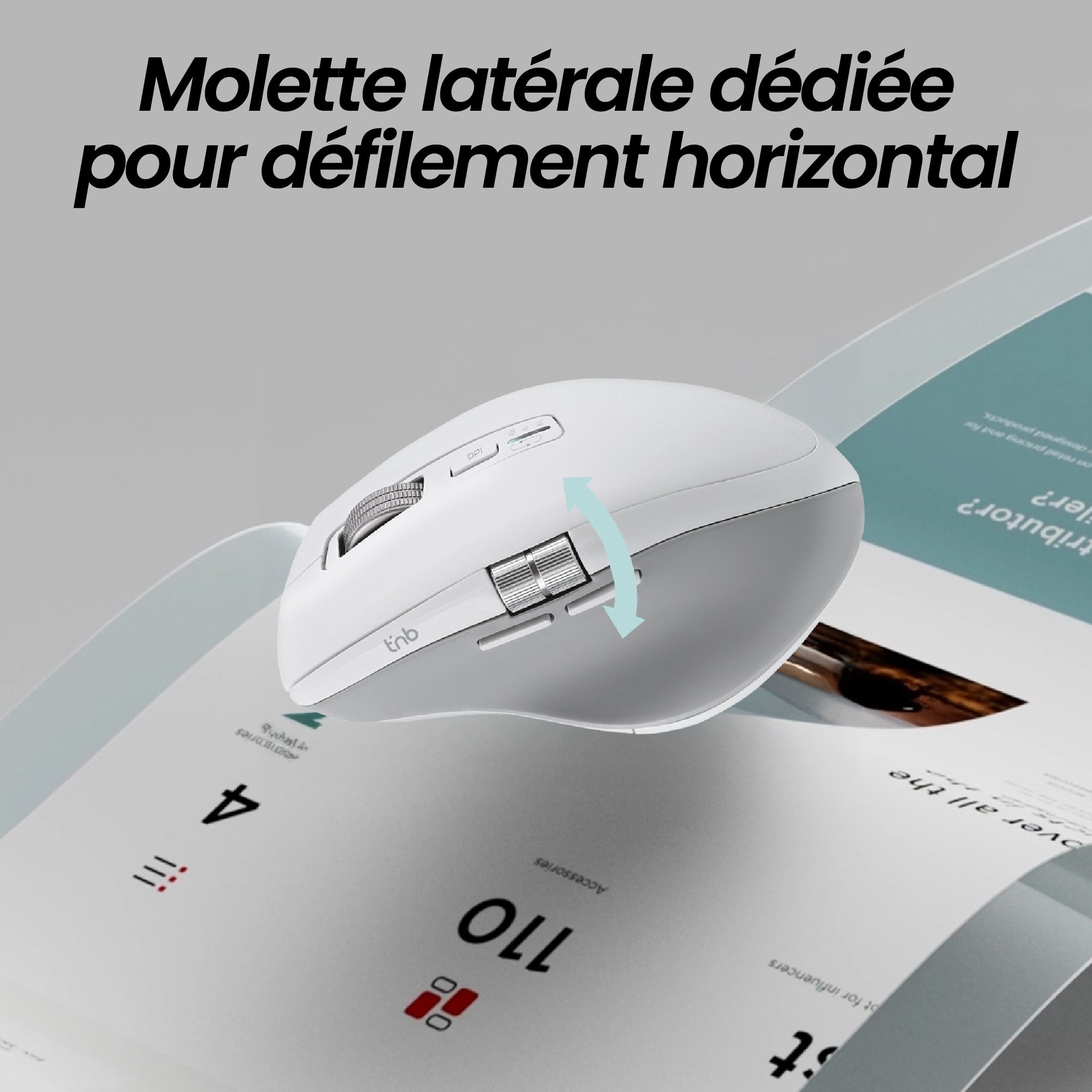 Con su segunda rueda lateral, fácilmente accesible bajo el pulgar, navega lateralmente por tus archivos y toma el control total con el ratón.