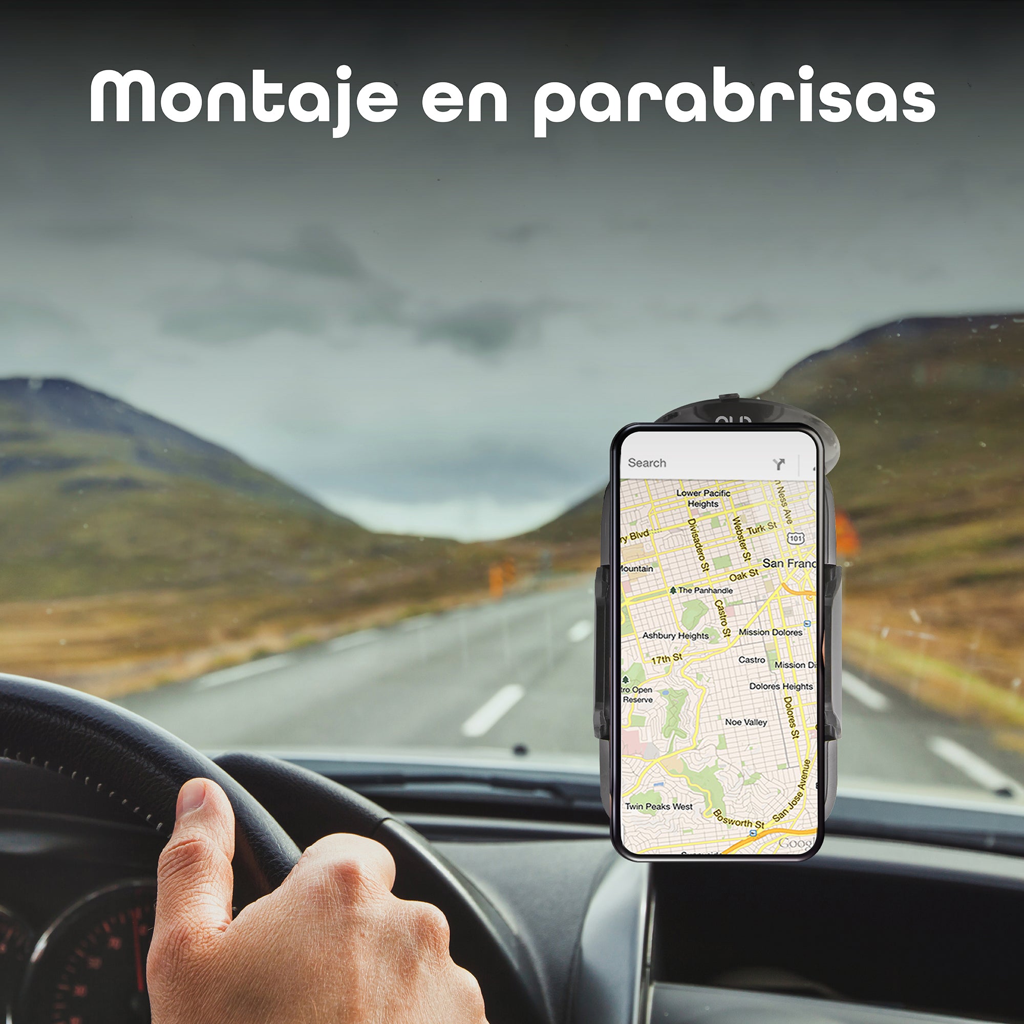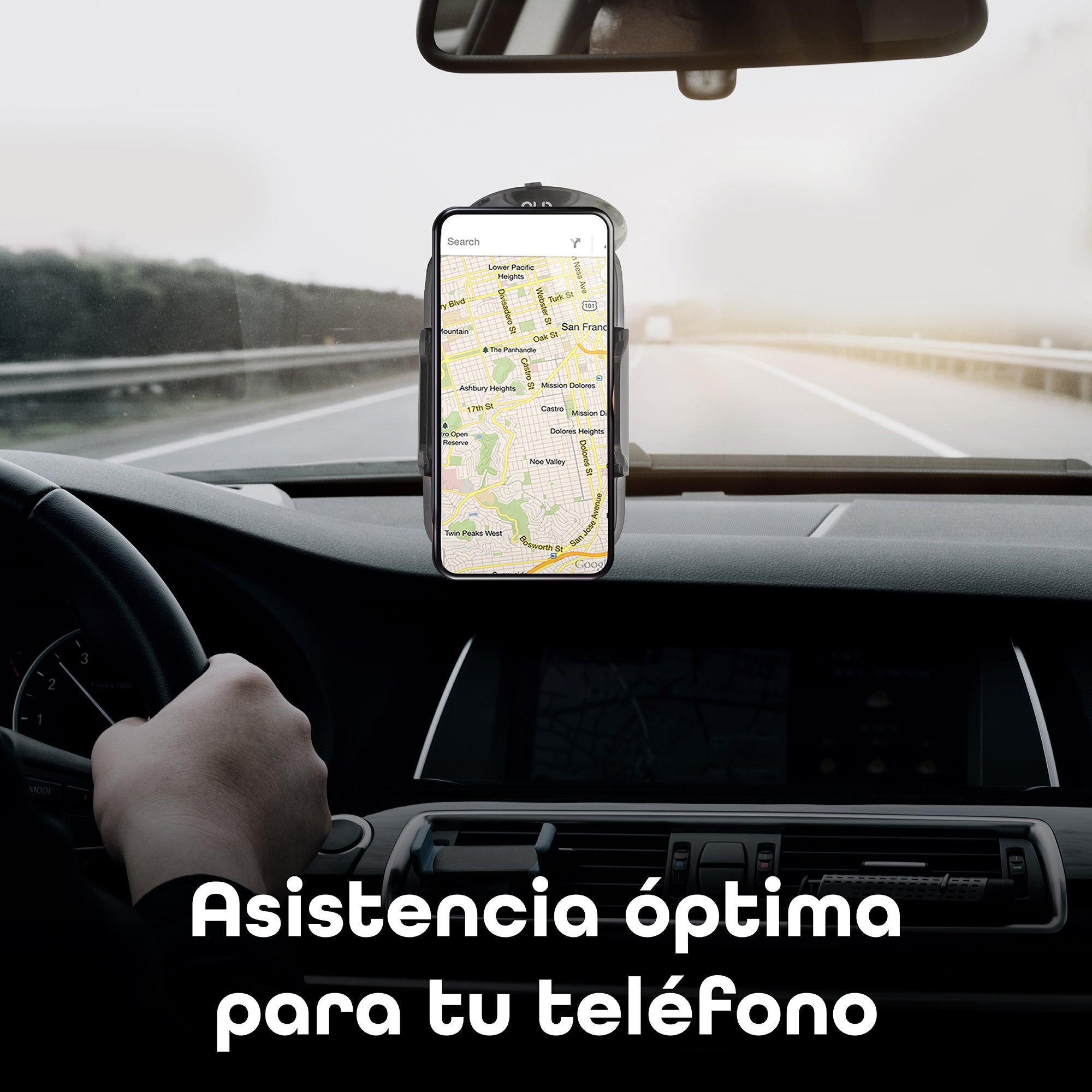 Su gran ventosa permite una fijación potente al parabrisas o al salpicadero si dispone de un adaptador circular. Además, sus abrazaderas garantizan un soporte óptimo para su dispositivo móvil.
