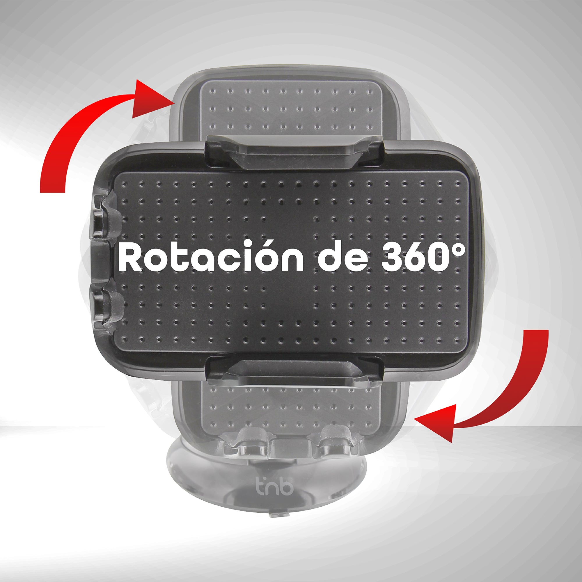 Su cabezal giratorio de 360° permite colocar el smartphone en horizontal. Robusto , soporta con seguridad un móvil de hasta 6 pulgadas .