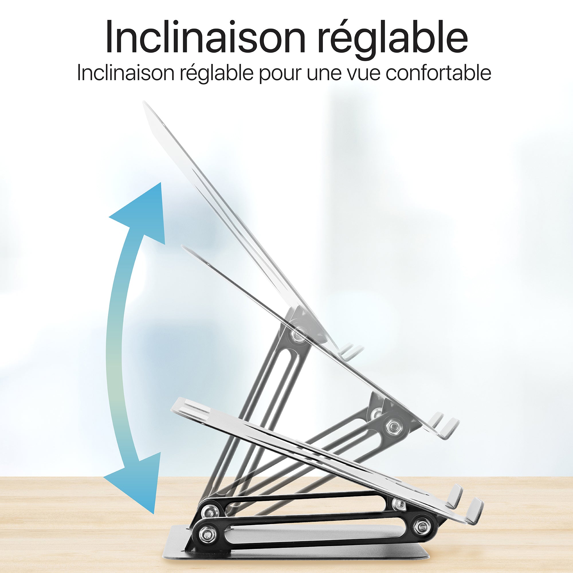 Ajuste fácilmente la altura de su portátil entre 2 cm y 17 cm. El ángulo de inclinación es totalmente flexible, entre 0° y 90°.