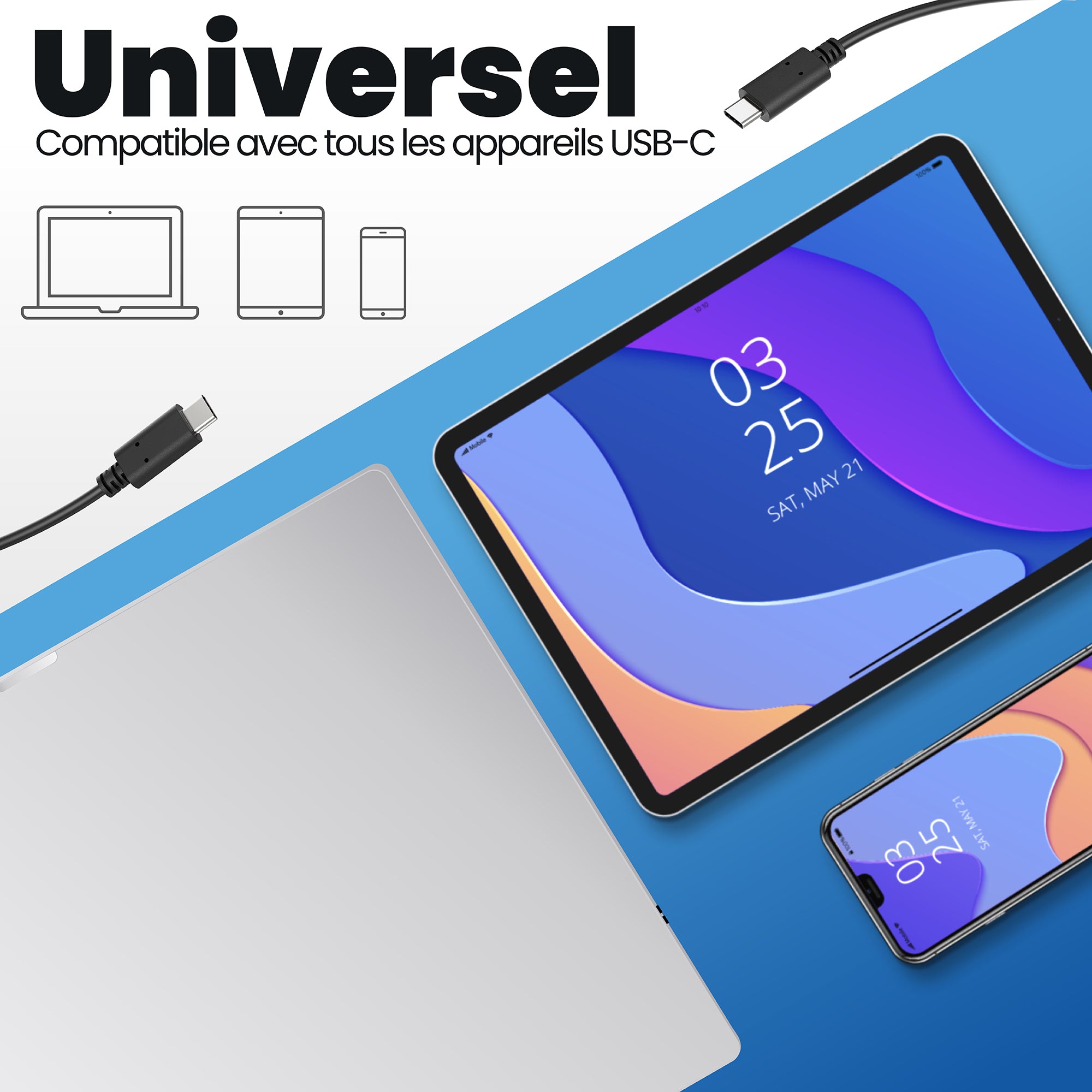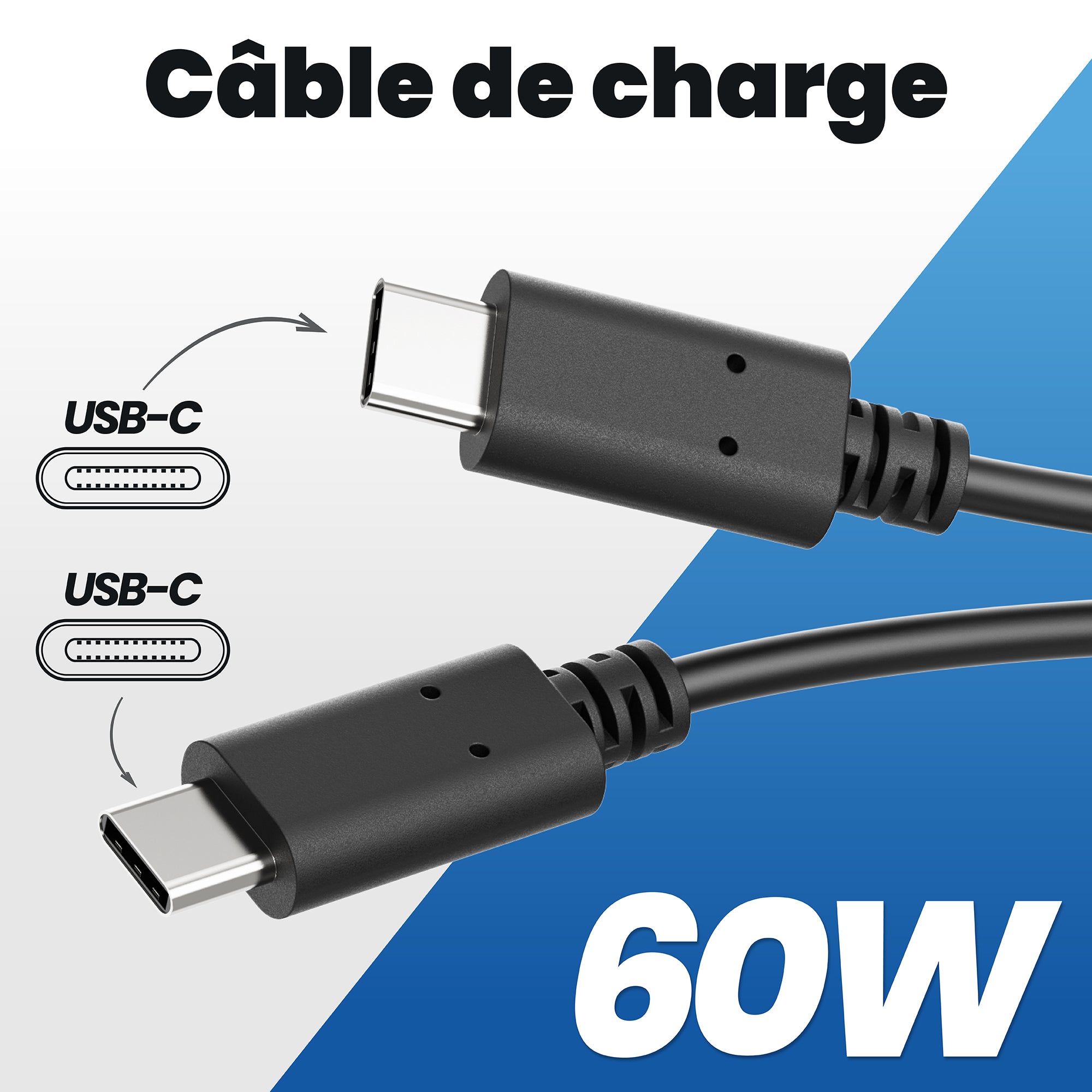 Este cable de carga USB-C a USB-C te permite cargar tu dispositivo USB-C y sincronizar todos tus archivos, fotos, música, vídeos a velocidades de 480Mbits/s, etc. Gracias a la tecnología Power Delivery (PD) podrás Tiene una velocidad de carga de 60 W y una transferencia de datos de muy alta velocidad. Cable ideal para smartphones y tablets equipados con puertos USB-C y para los últimos portátiles equipados con puertos USB-C. Longitud 1 metro.