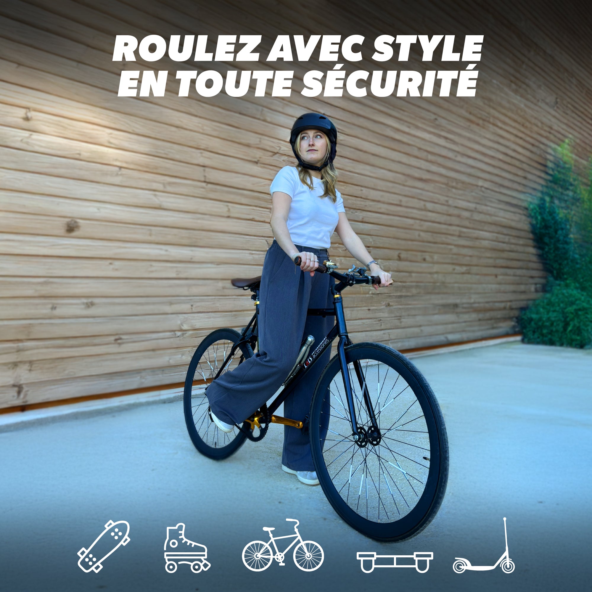 Ya no tengas miedo a las caídas con el casco protector Urban Moov. En scooter, bicicleta o hoverboard, este casco te protegerá de golpes y golpes. Las 14 salidas de aire te brindan una mejor ventilación. Su sistema de ajuste en la espalda y su correa ajustable te permiten ajustarlo perfectamente para un soporte absoluto y máxima protección. Este casco está probado y certificado y cumple con la norma CE: EN 1078; 2012 + A1: 2012 según normas y estándares de seguridad.