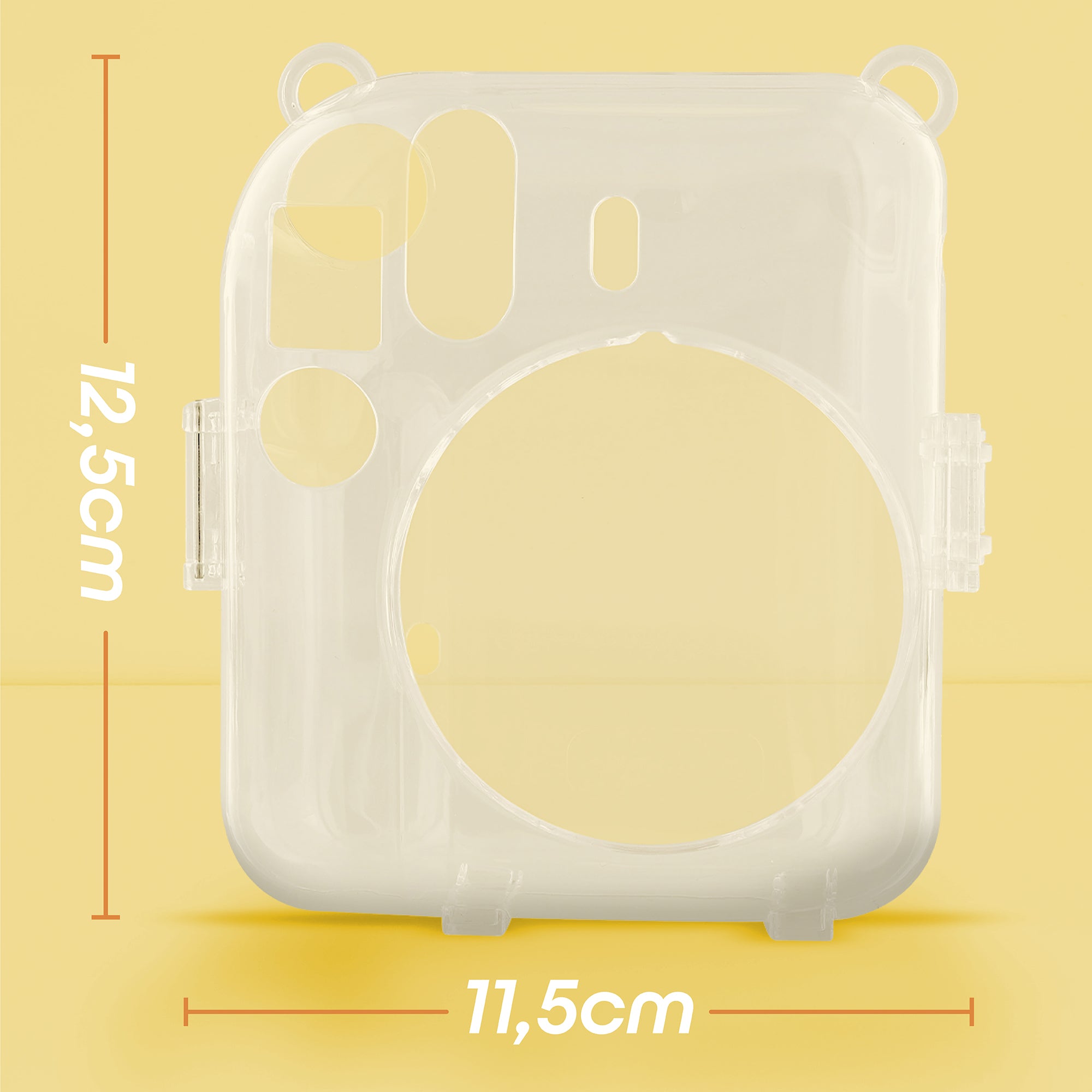 Lleva y protege tu Fujifilm instax mini 12 con la funda protectora Lensy. Esta funda con los colores de tu instax mini facilitará el transporte y permitirá su uso. De hecho, puedes tomar fotos mientras mantienes el dispositivo dentro del estuche. Su correa ajustable para el hombro facilitará el uso de tu Instax Mini 12.