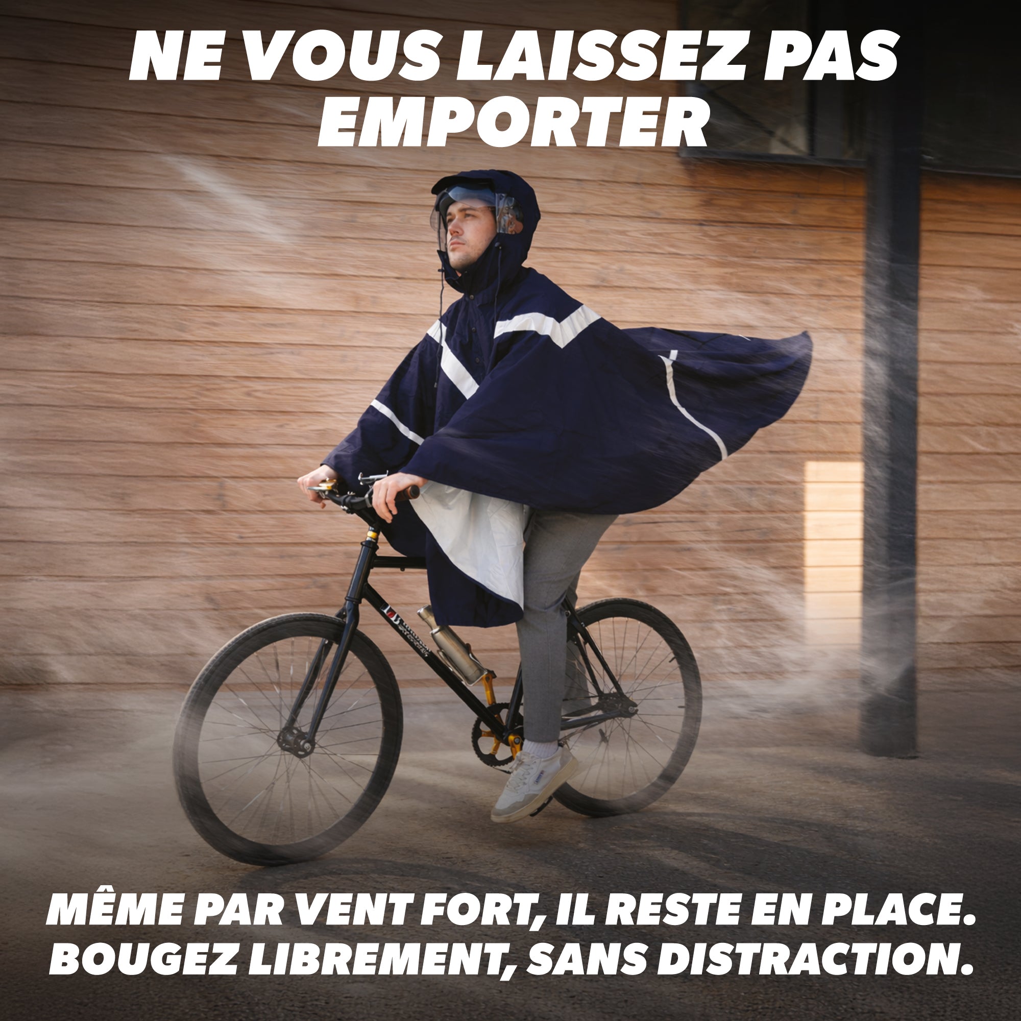 Découvrez le poncho ultime conçu pour vous protéger contre la pluie tout en garantissant confort et sécurité, idéal vélo et trottinette.