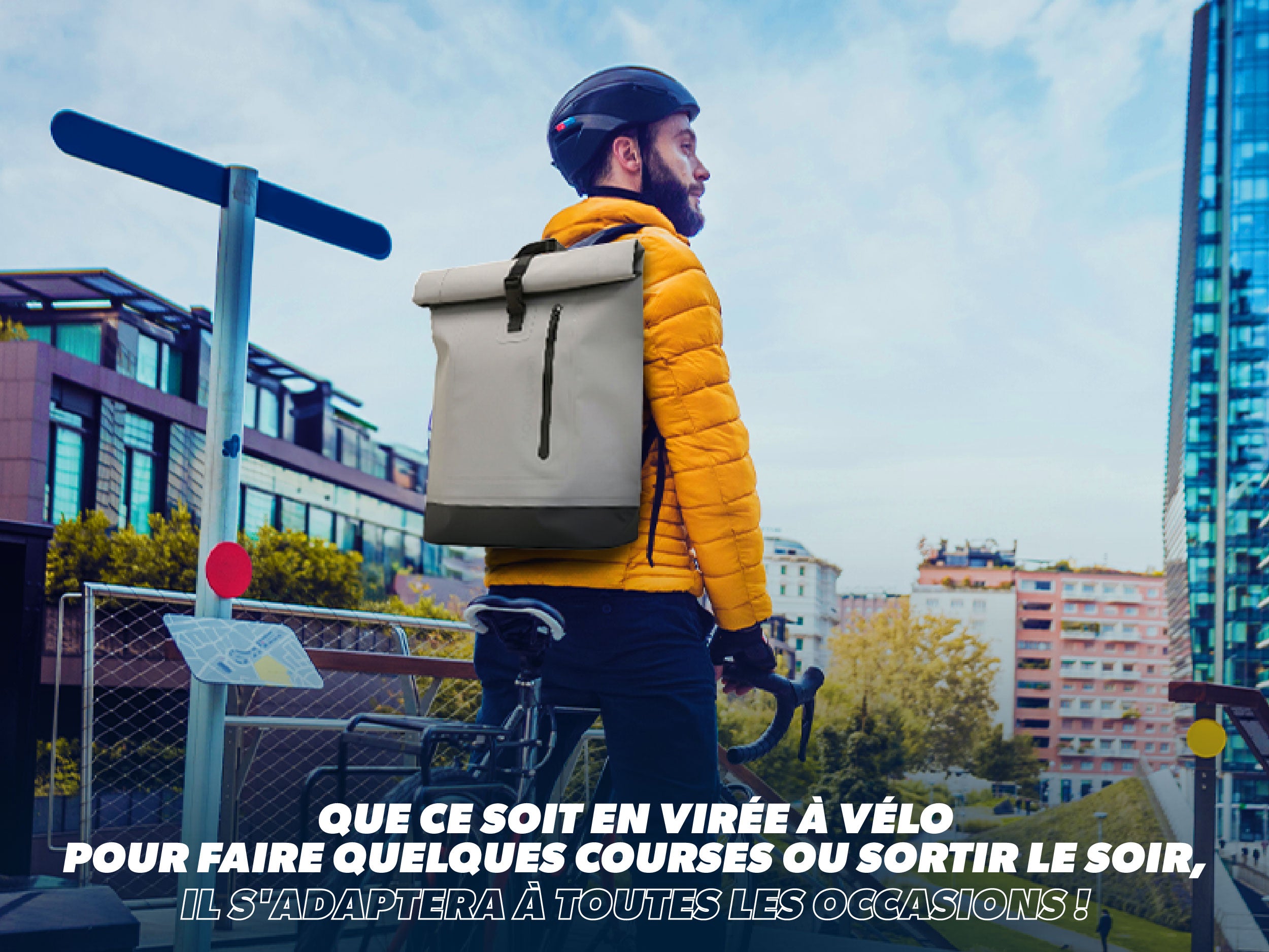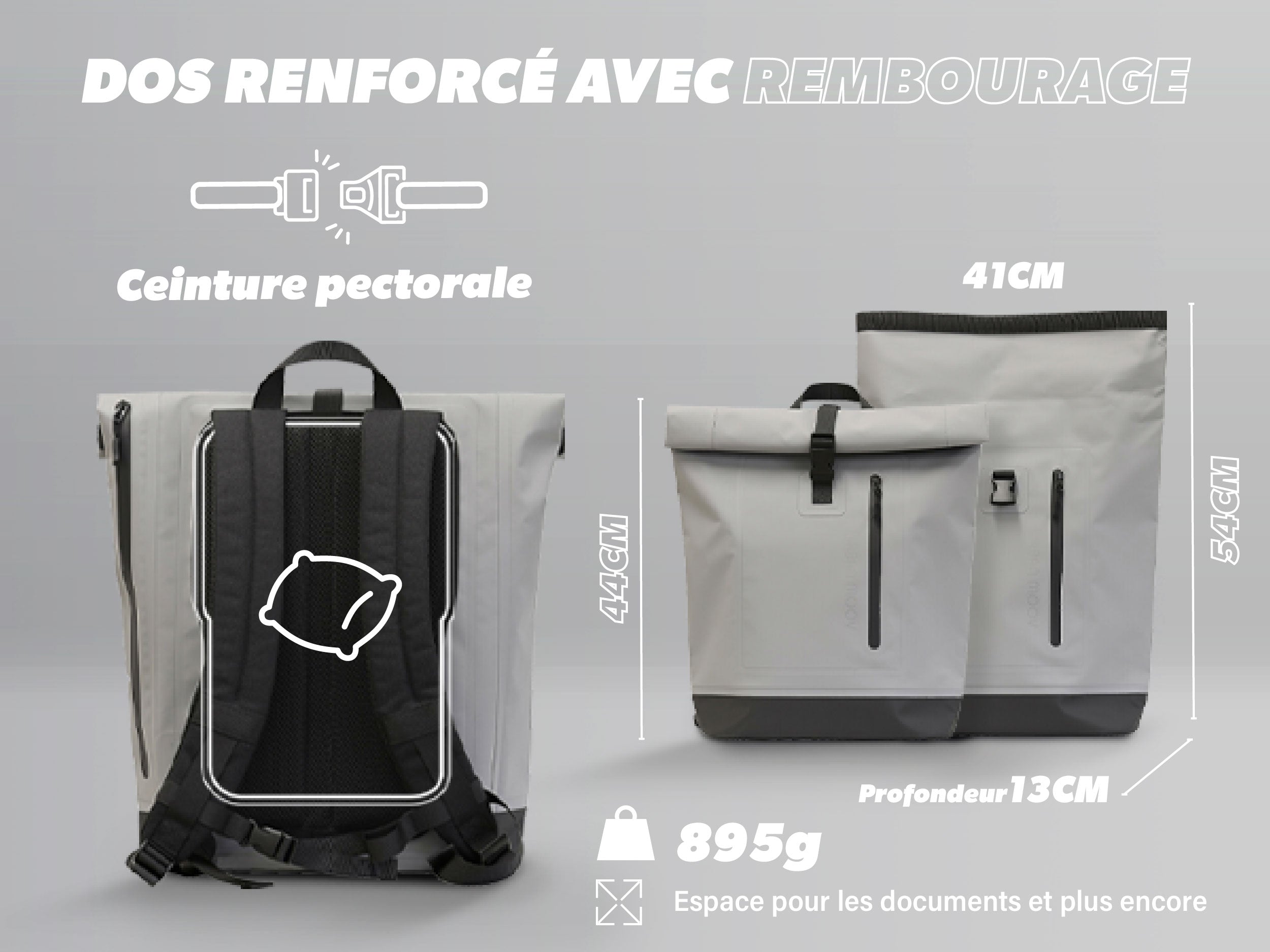 Confectionné en tissu imperméable, il protège vos affaires de la pluie. Pliez le rolltop en un enroulement serré.