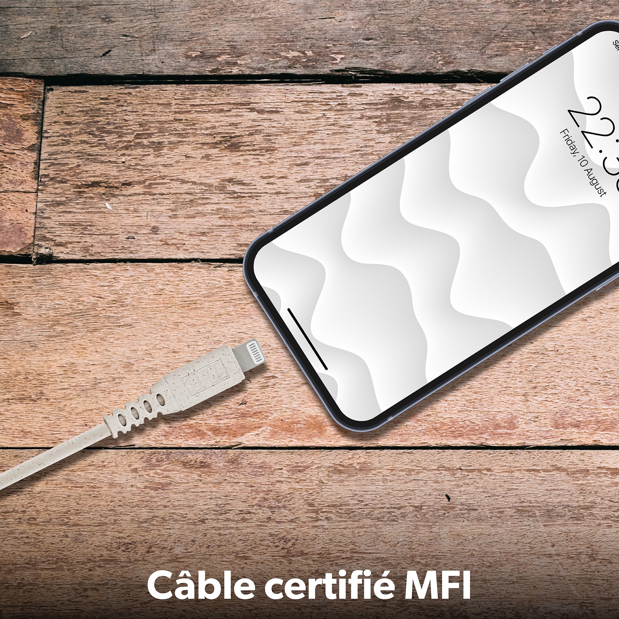 Câble certifié MFI pour iPhone (à partir de l'iPhone 5) / iPod / iPad dernière génération.