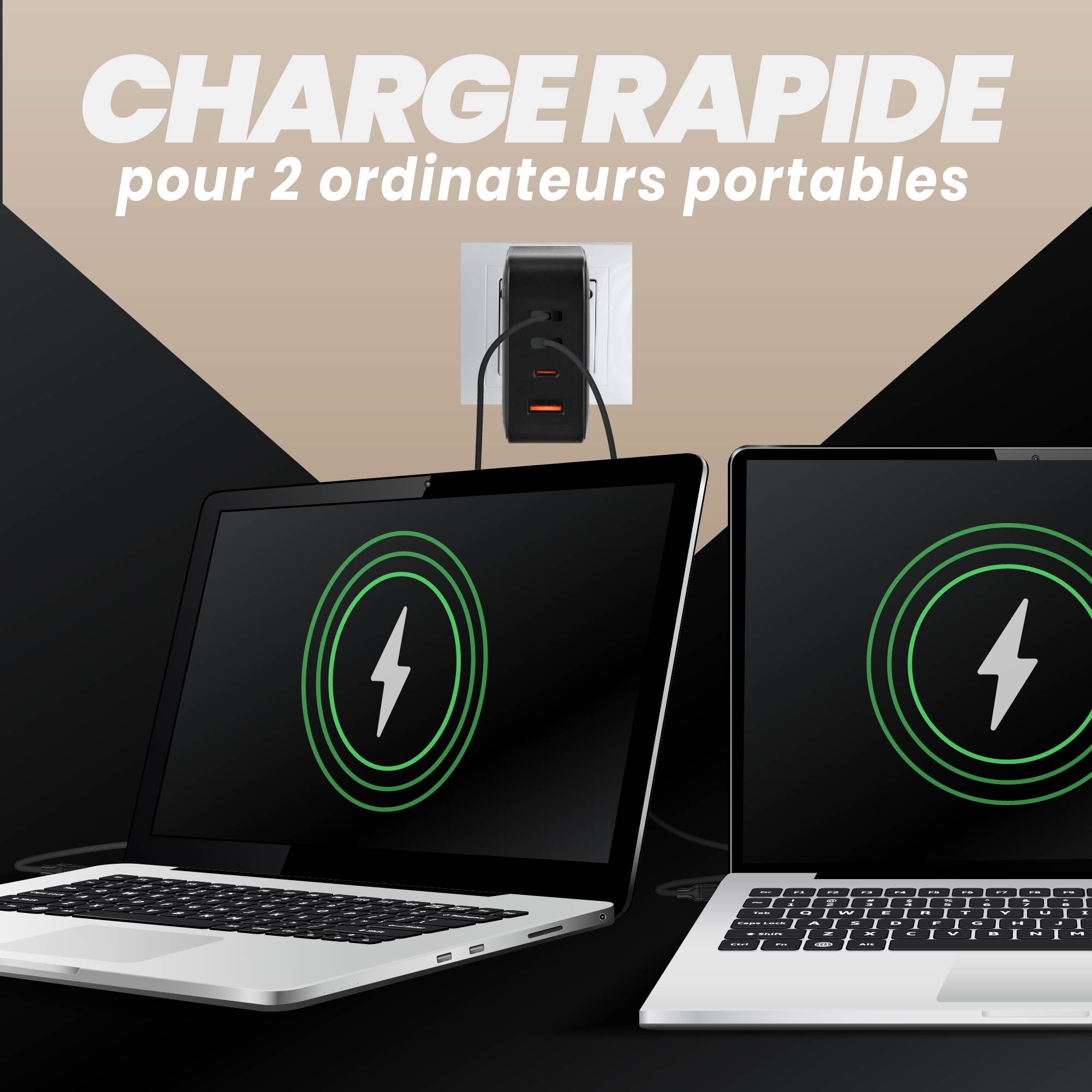 • Design compact : technologie GaN pour un chargeur plus petit et plus efficace.