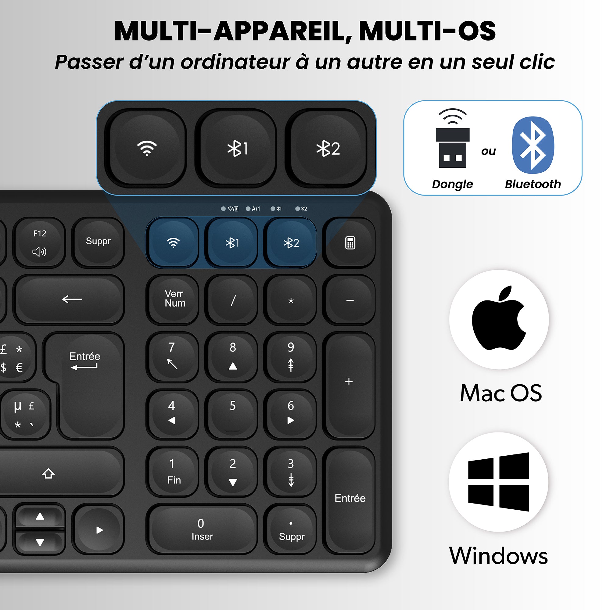 Double mode de connexion Bluetooth et USB-A 2,4 GHz. Passez d'un ordinateur à un autre en 1 clic.