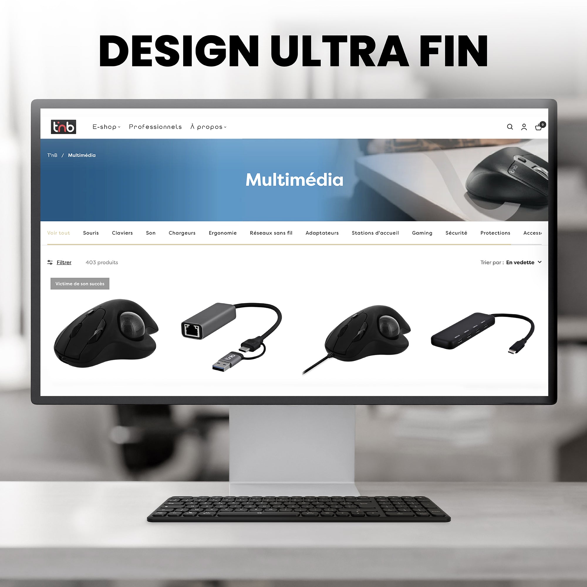 Clavier sans fil Bluetooth rechargeable au design ultra fin.