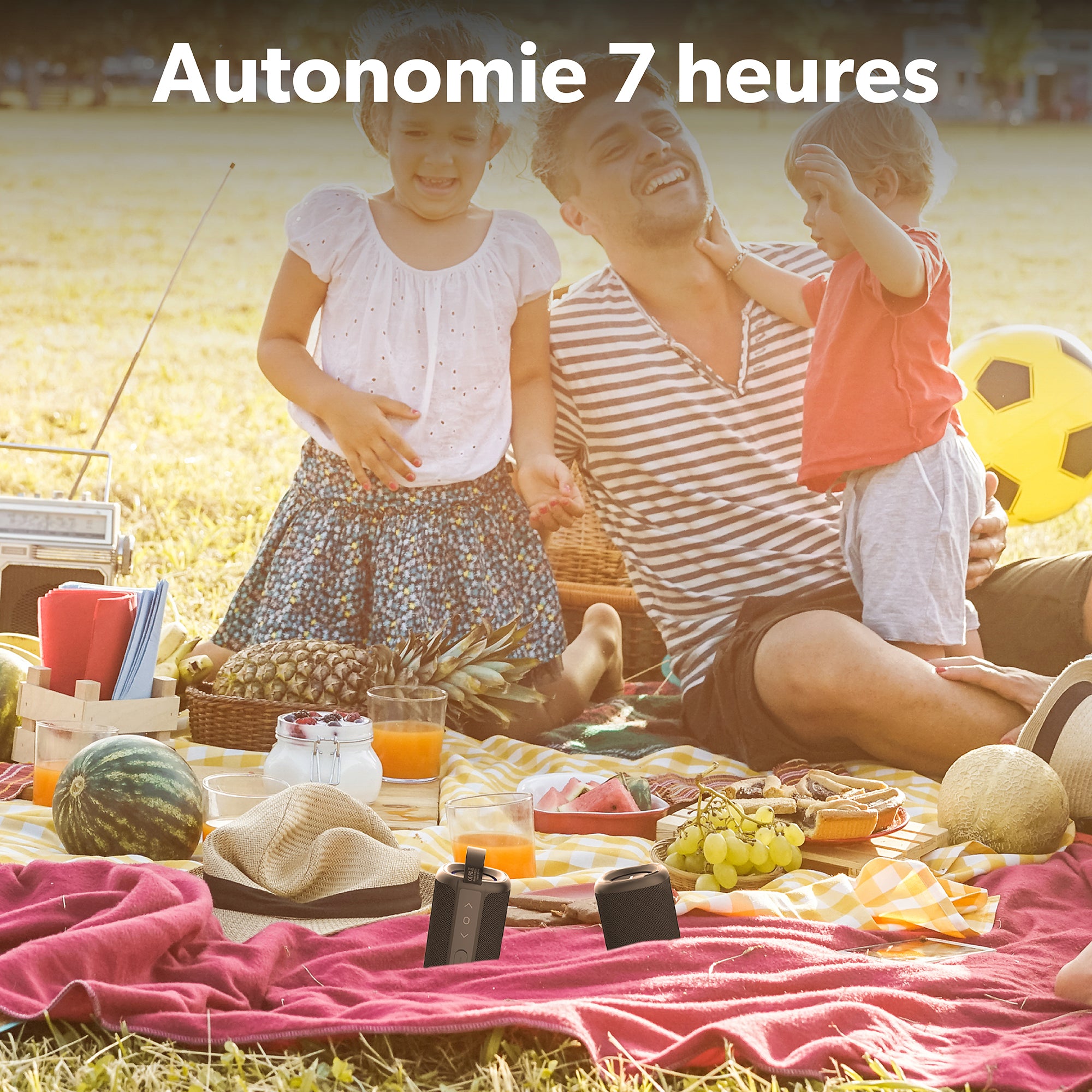 Prête à tout : 20W stéréo, IPX7 étanche, autonomie 7h, séparable en 2 x 10W.