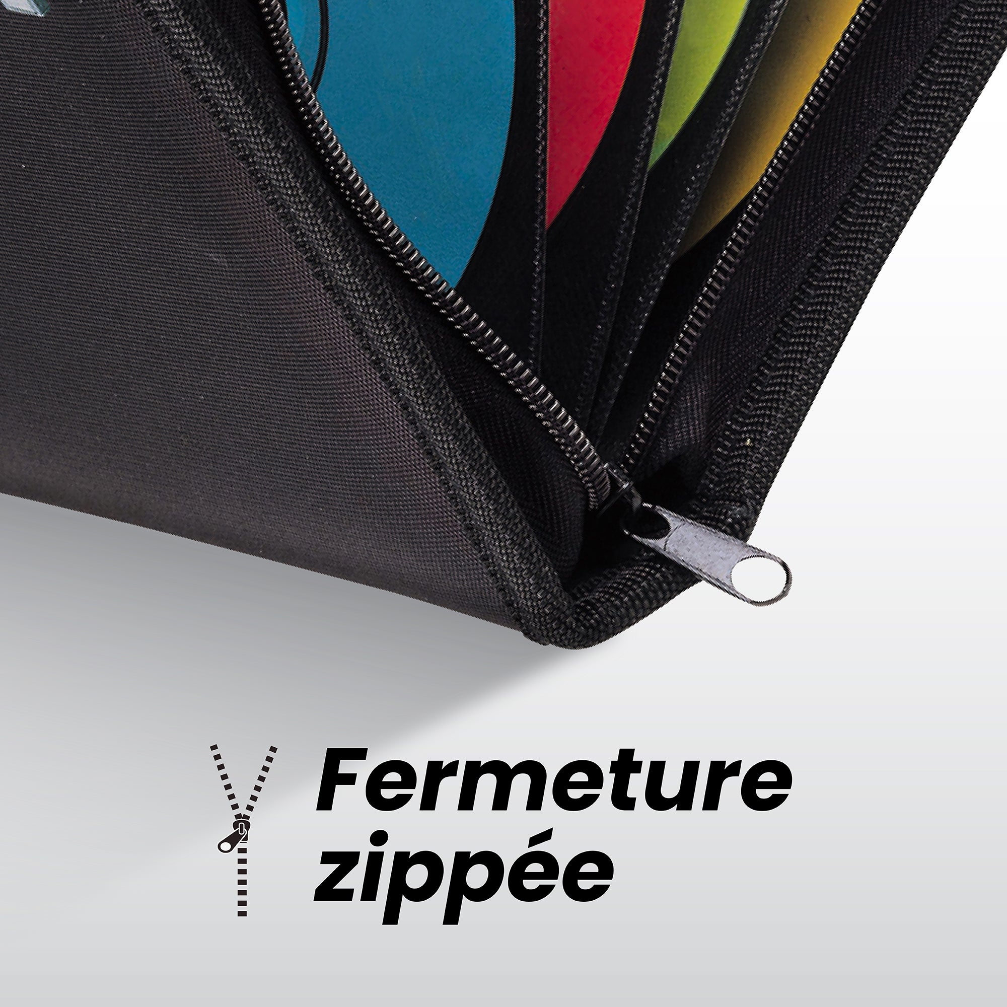 Fermeture zippée, capitonnage anti-choc, poignée de transport.