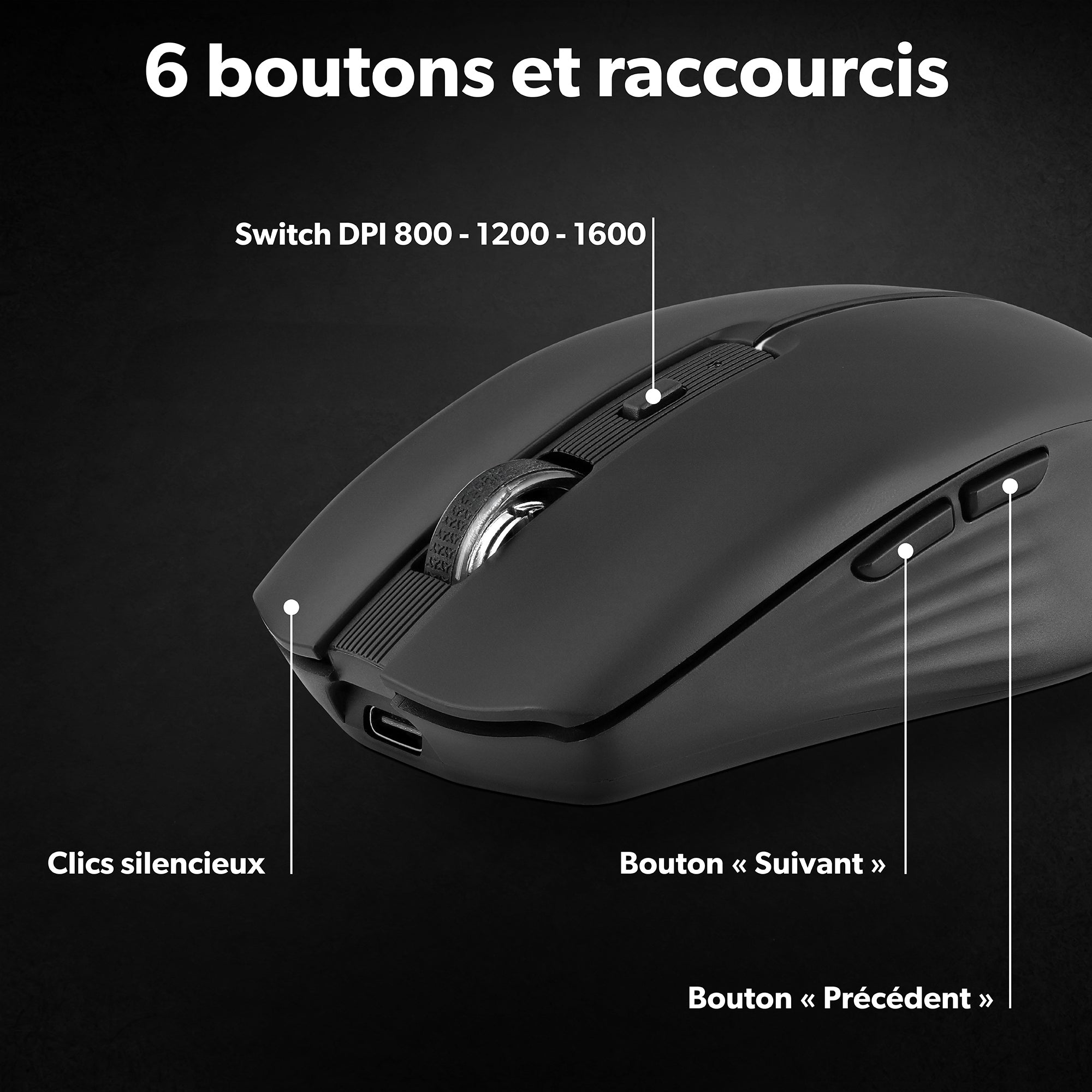 Utilisez votre souris en Bluetooth ou profitez de sa simplicité de connexion Plug & Play avec son dongle USB. Branchez et naviguez instantanément.