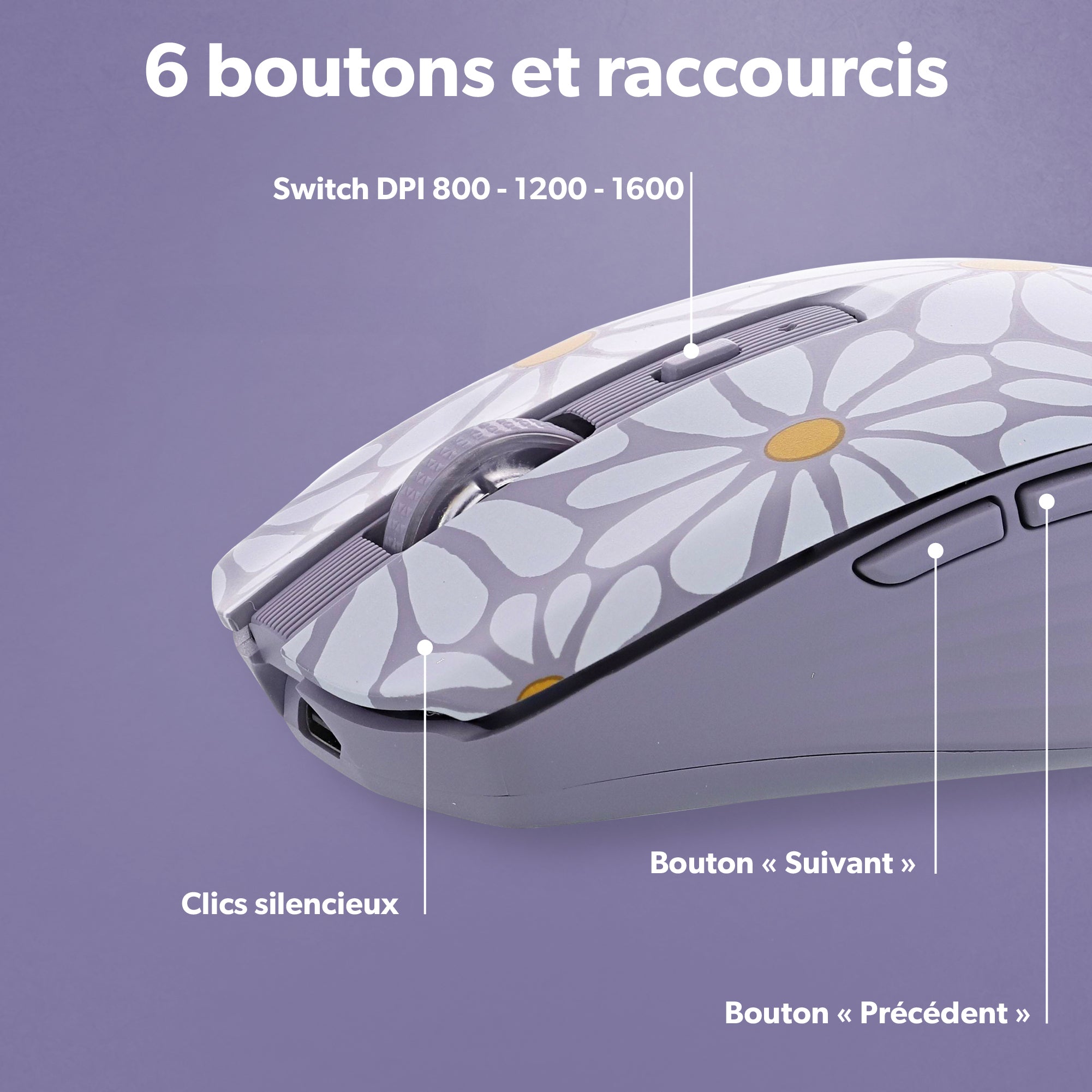 Design FLOWER aux inspirations florales et couleur lavande. Design moderne avec une prise en main agréable.