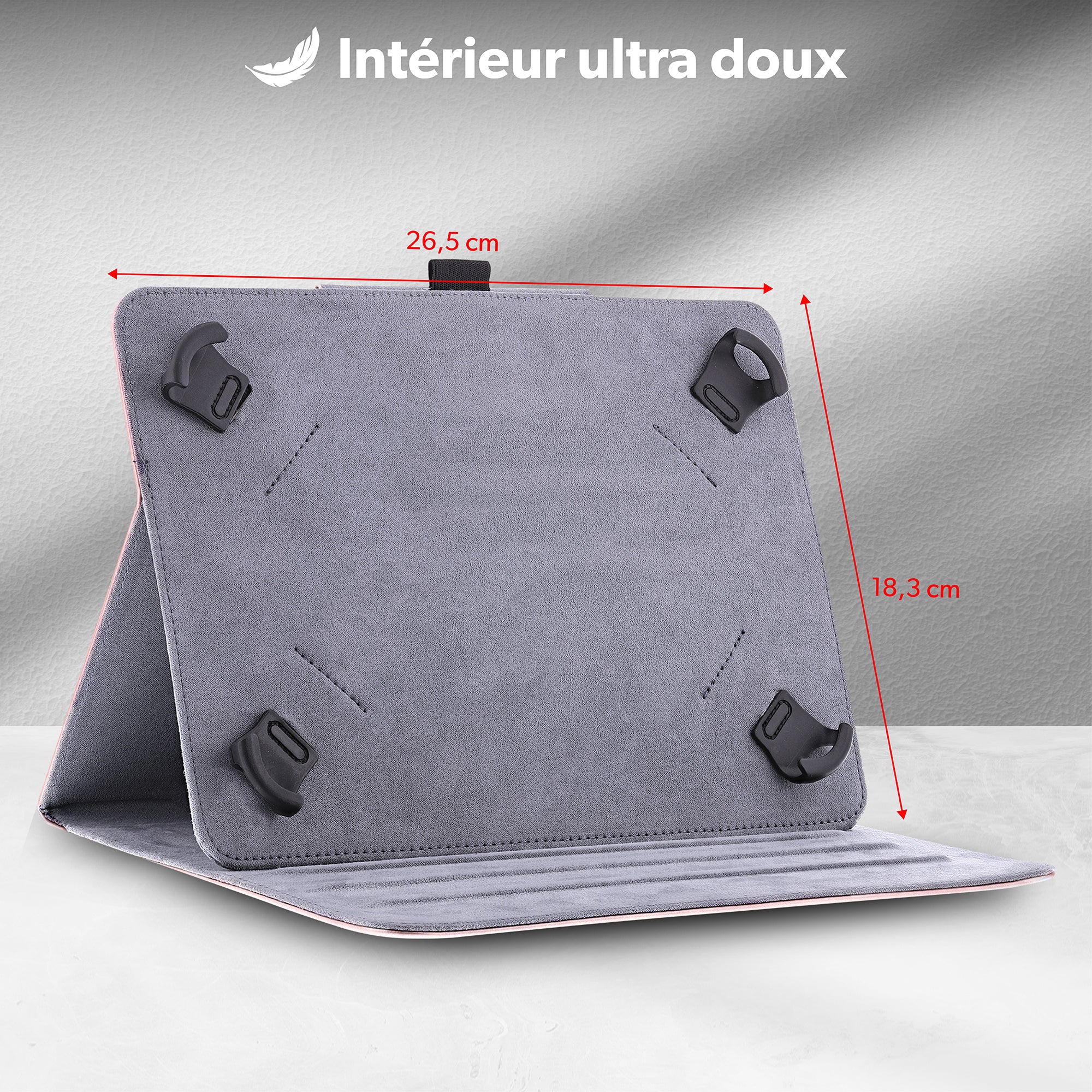 Le folio universel accueille n'importe quelle tablette jusqu'à 11'', grâce à son système à quatre élastiques. Ces derniers, très résistants, maintiennent fermement votre tablette et vous permettent une utilisation optimale.