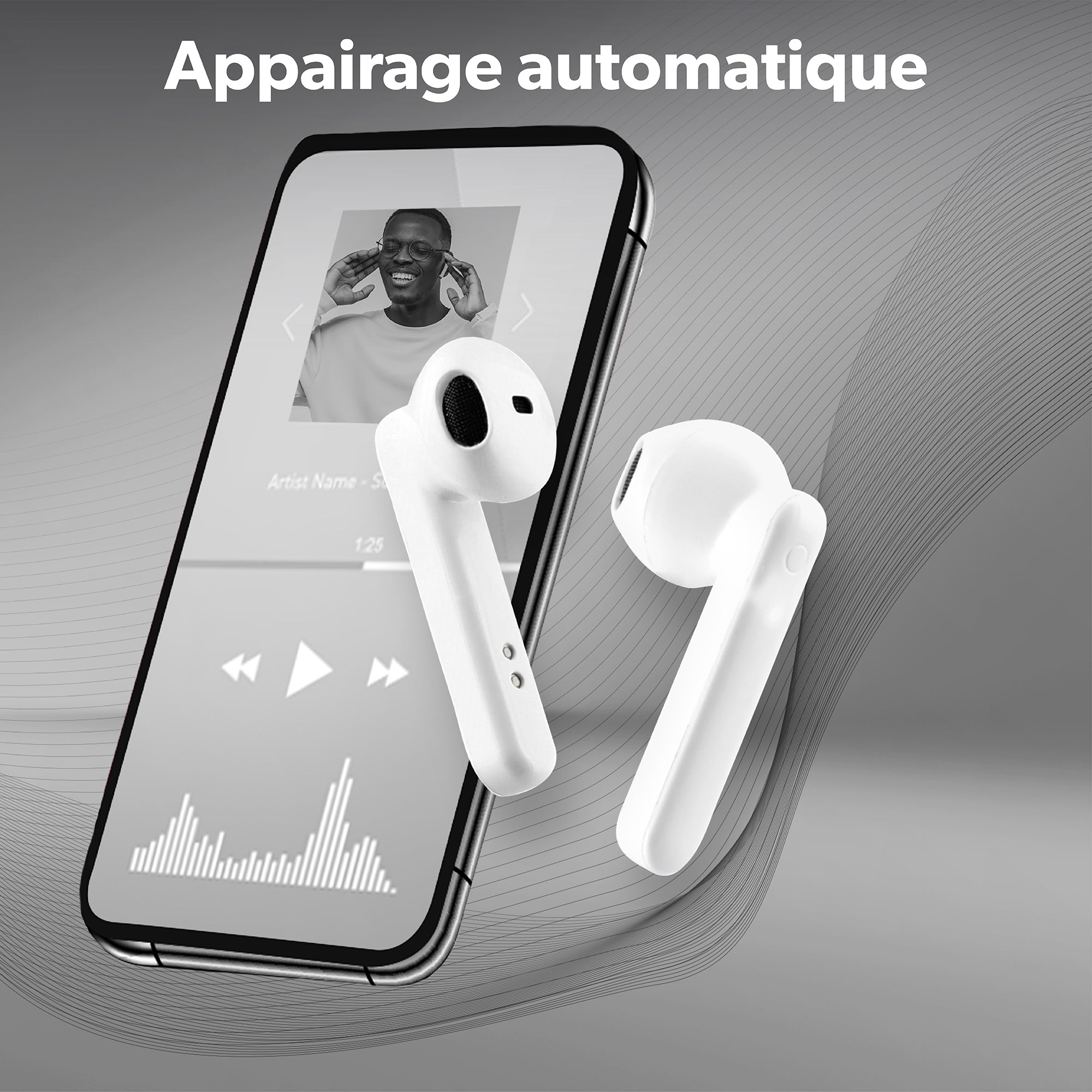 De plus, grâce à la technologie Bluetooth 5.0, il est possible de profiter d'une autonomie prolongée d'environ 5h ainsi que d'une restitution sonore encore plus fidèle. Le boîtier de recharge fourni vous permettra de transporter vos écouteurs partout tout en les rechargeant ! La batterie de secours du coffret vous assure une autonomie de plus de 25 heures d'écoute. La fonction "touch control" vous permet de contrôler votre musique ou répondre à vos appels simplement en touchant vos écouteurs !