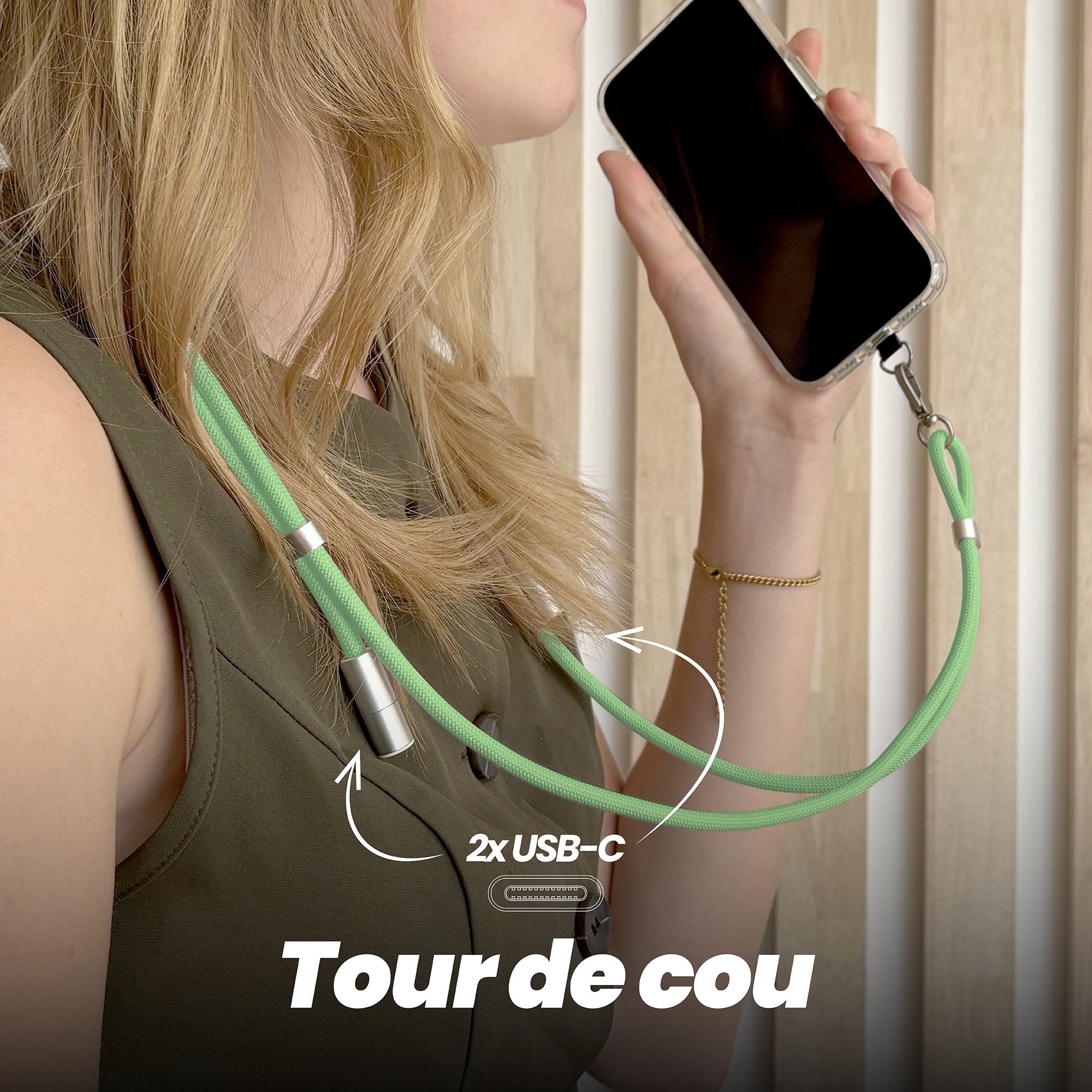 Découvrez le câble tour de cou USB-C vers USB-C, l’accessoire 2-en-1 qui révolutionne votre quotidien. Conçu pour allier style, praticité et durabilité, ce câble vous permet de recharger votre smartphone tout en le gardant à portée de main.