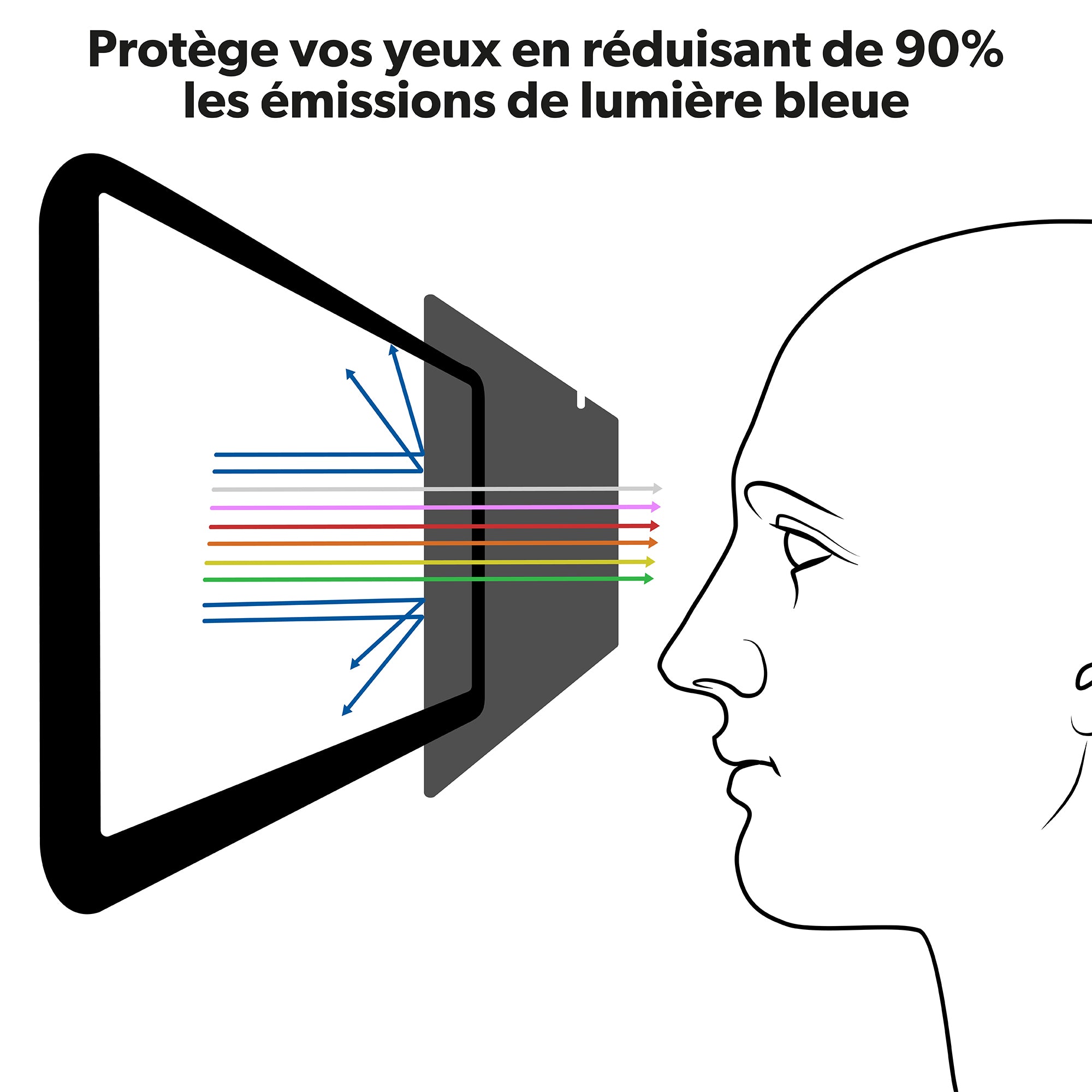 Réduit le rayonnement nocif des lumières bleues de plus de 90%.
