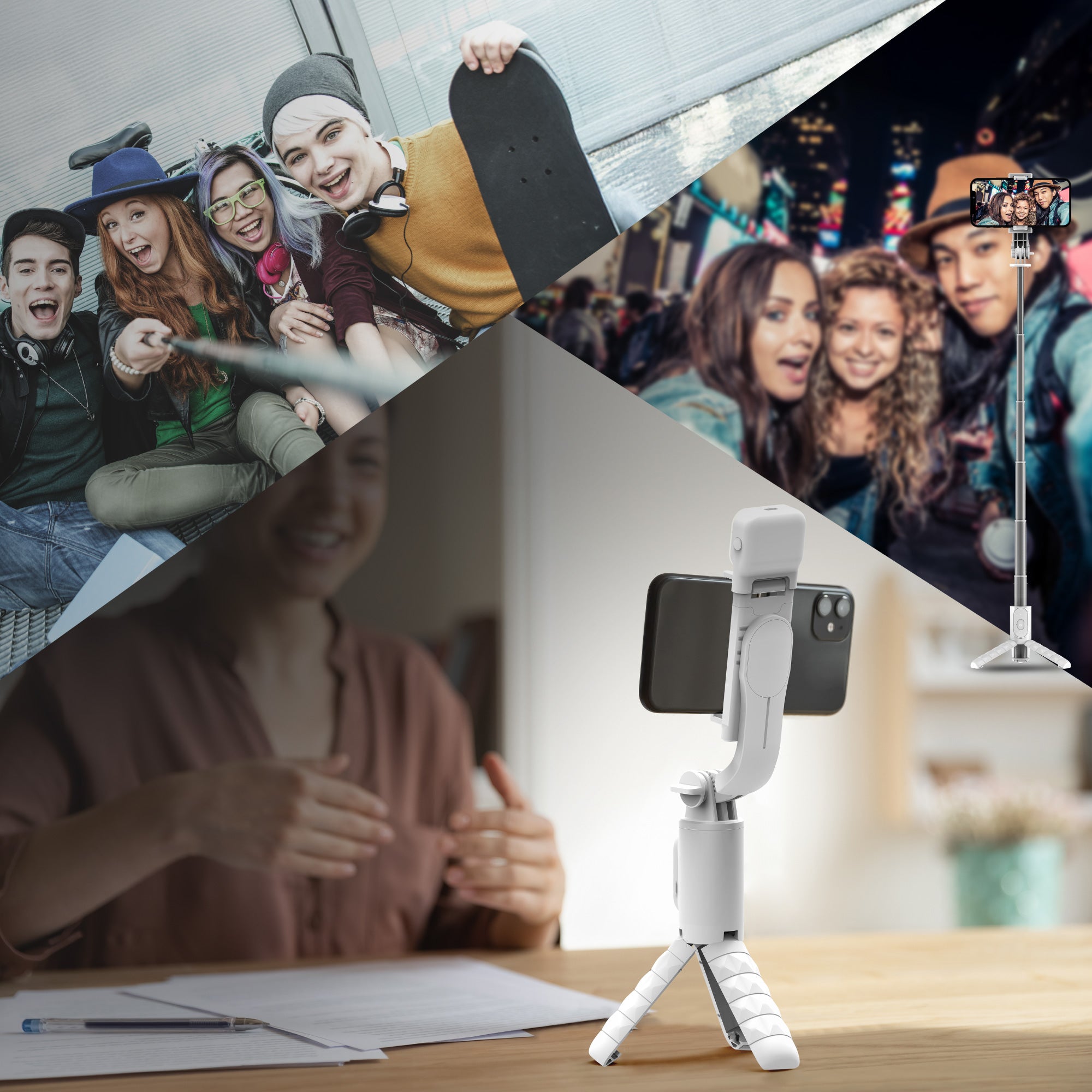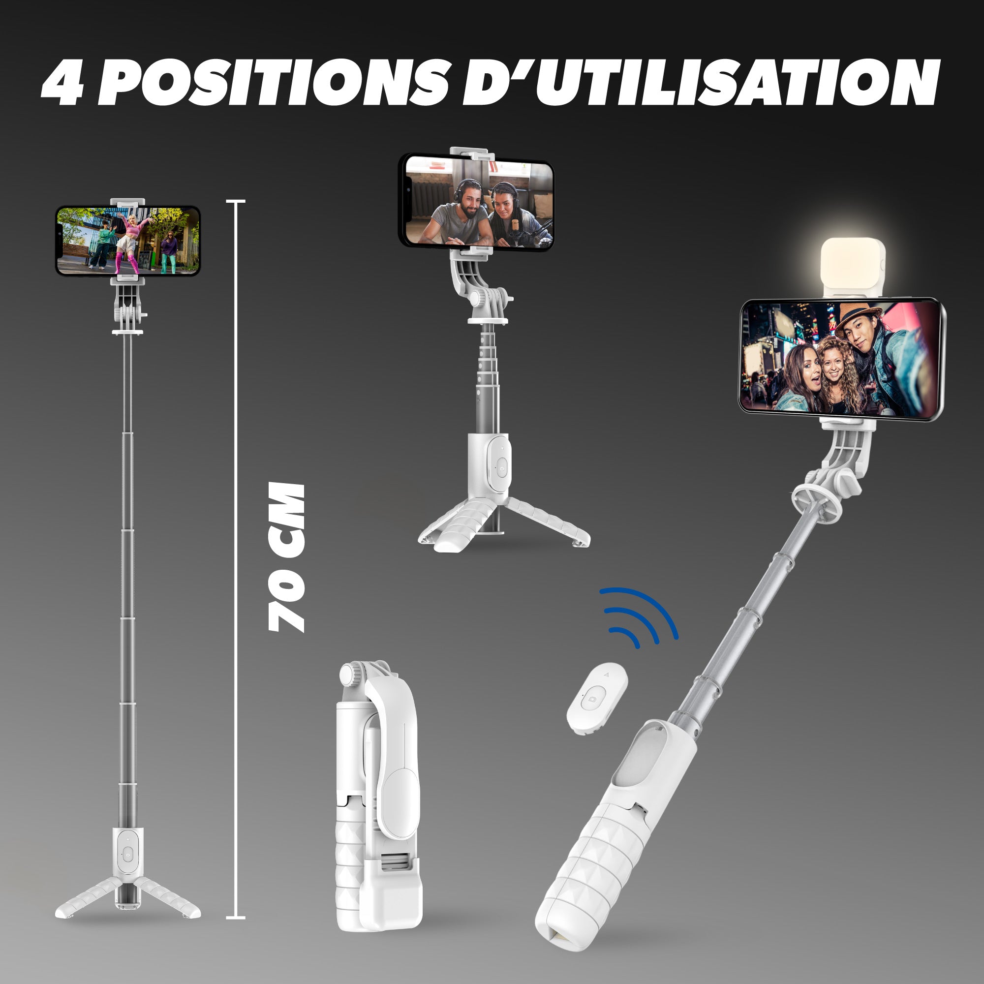 Mini perche à selfie Bluetooth 2 en 1 blanc avec l’éclairage LED - INFLUENCE PRO