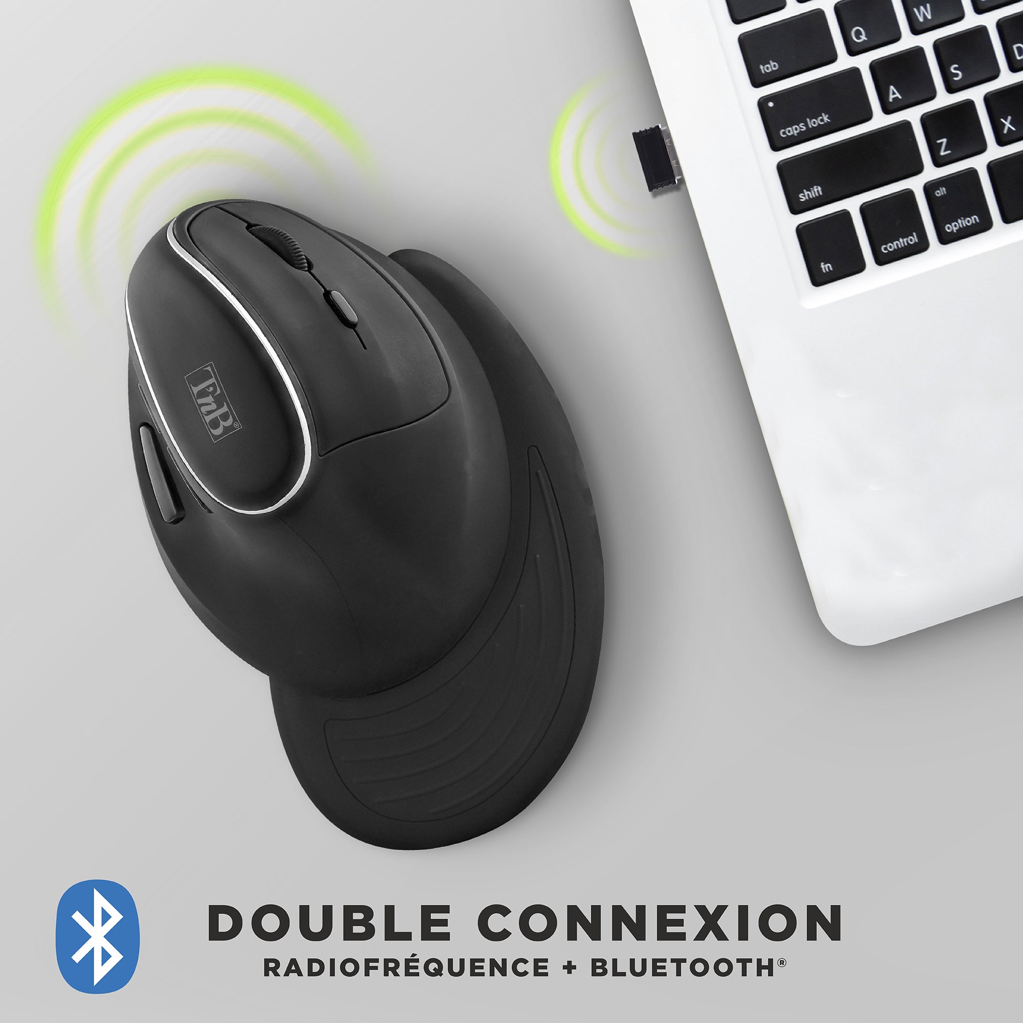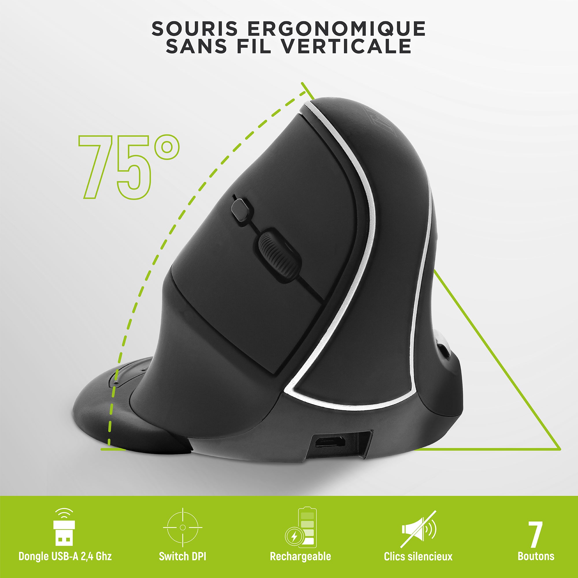 Souris sans fil ergonomique verticale rechargeable double connexion Bluetooth + USB-A