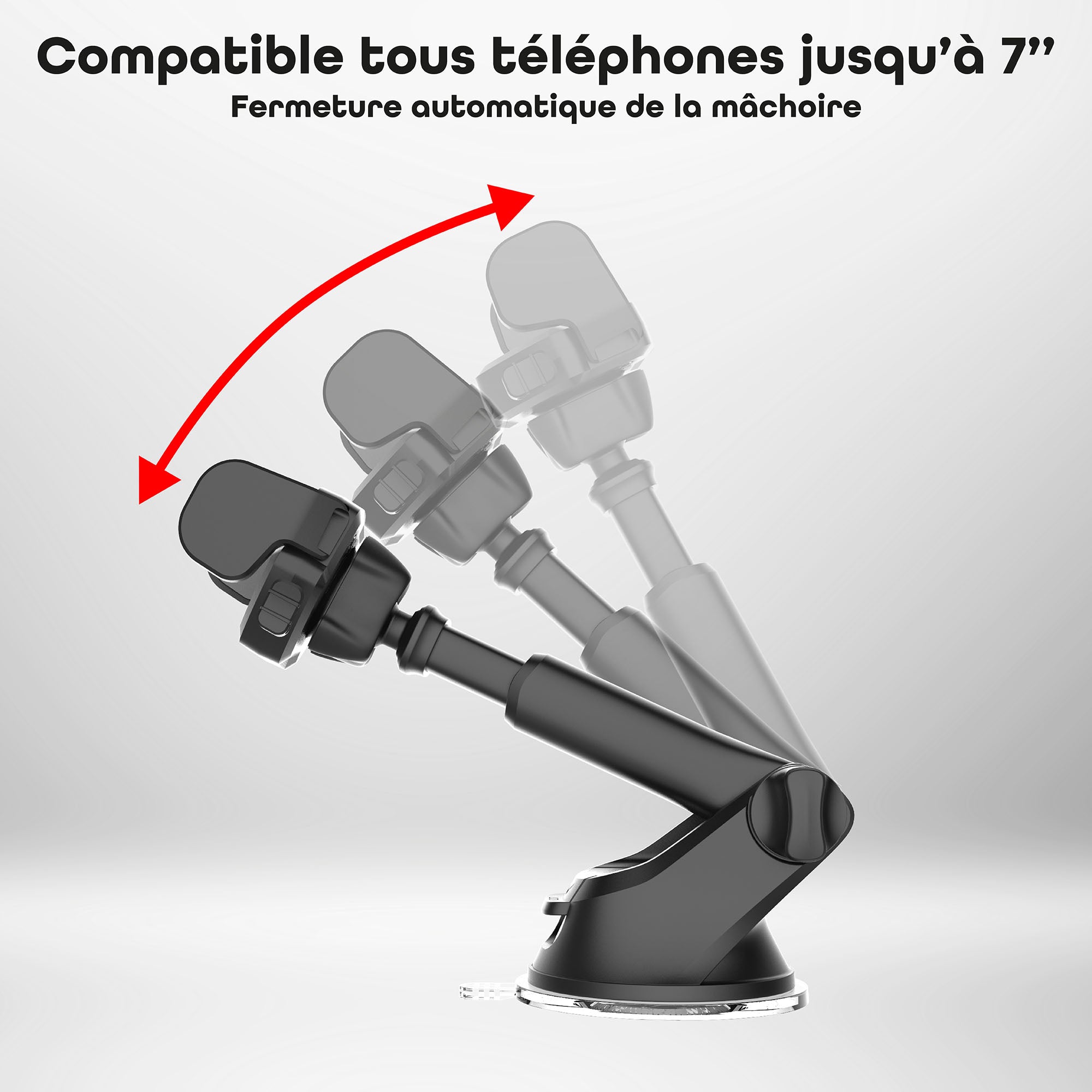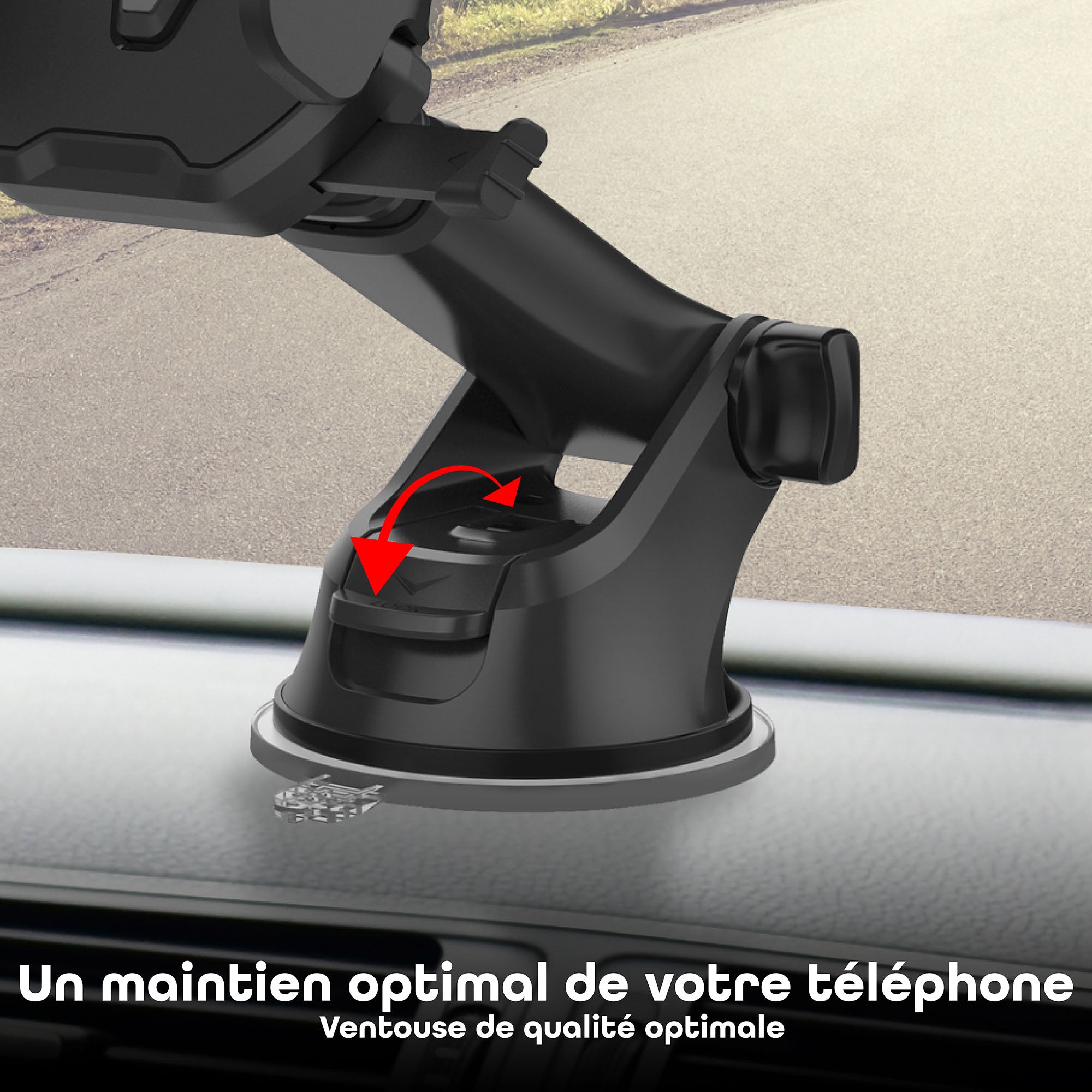 Ce support automatique pour pare-brise et tableau de bord est idéal pour accéder à votre smartphone en un geste en voiture.